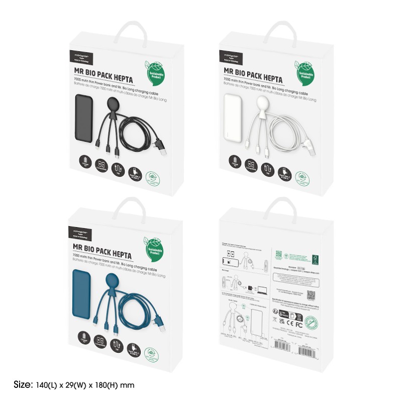 Le pack de charge Xoopar Hepta : une power bank de 7000mAh, de quoi recharger 3X votre smartphone, combinée à un câble multi-connecteurs de 1M de long pour plus de liberté.