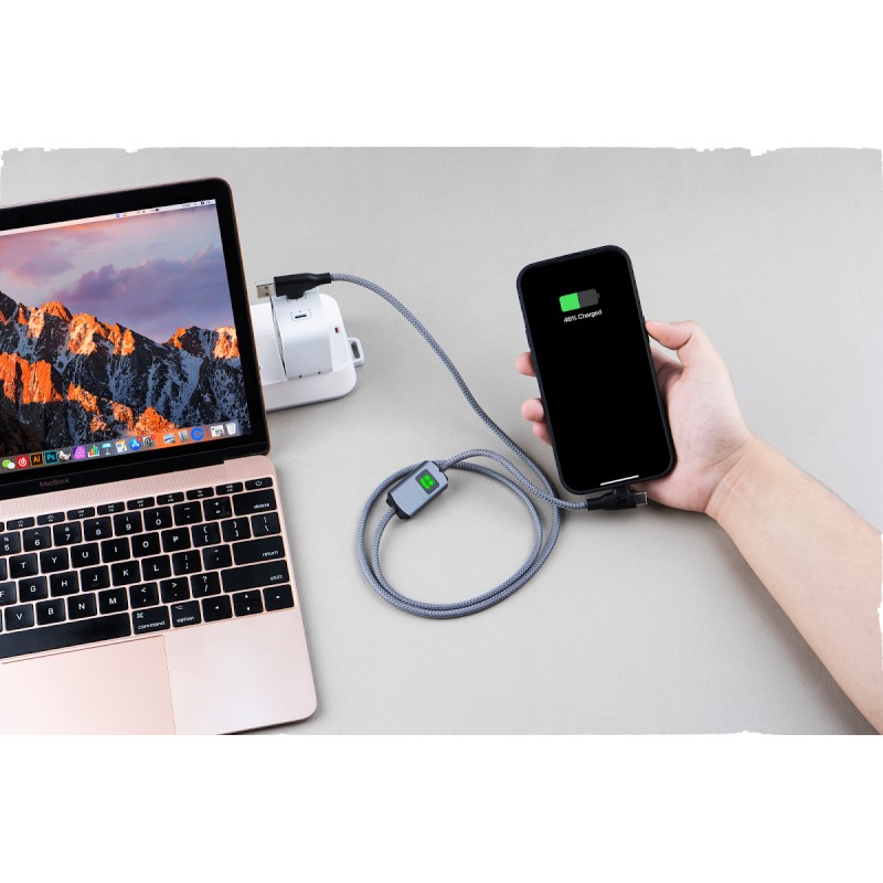 Voici Allure, le câble de charge rapide de 100W d'1 mètre de long de notre nouvelle collection en aluminium recyclé certifié GRS, qui s'adapte à tous les environnements. Avec sa compatibilité CarPlay, et ses 100W il vous permettra de charger tous vos appareils, même vos ordinateurs portables !