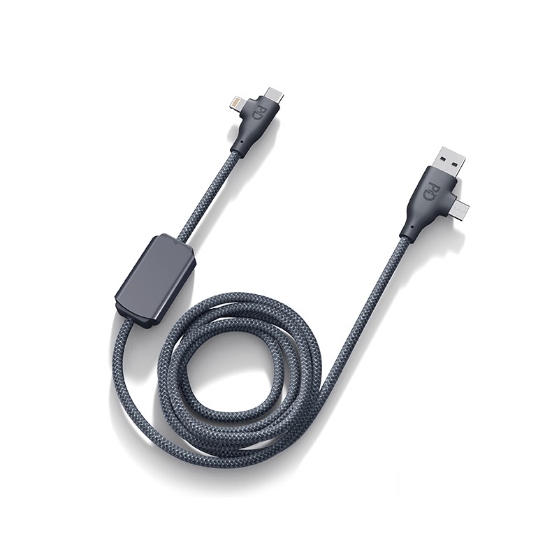 Voici Allure, le câble de charge rapide de 100W d'1 mètre de long de notre nouvelle collection en aluminium recyclé certifié GRS, qui s'adapte à tous les environnements. Avec sa compatibilité CarPlay, et ses 100W il vous permettra de charger tous vos appareils, même vos ordinateurs portables !