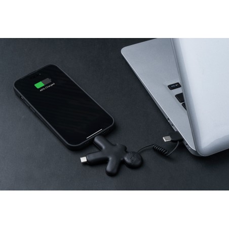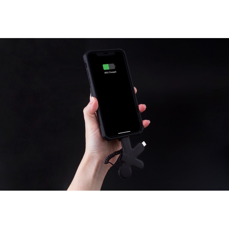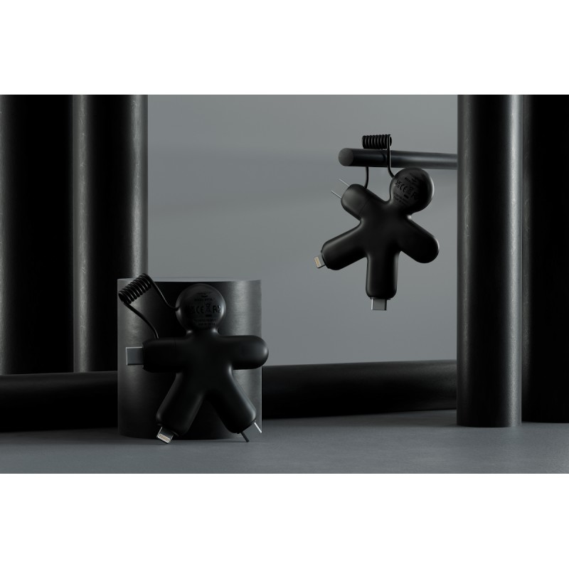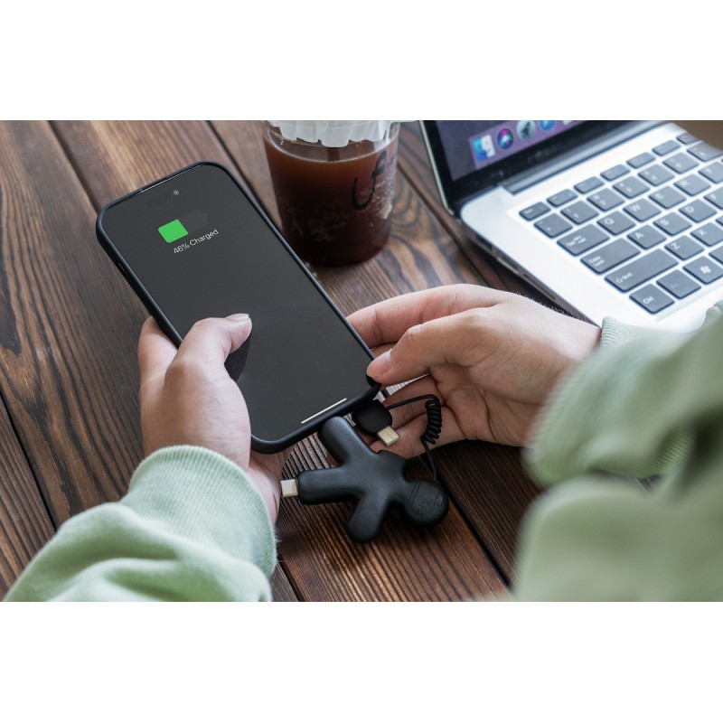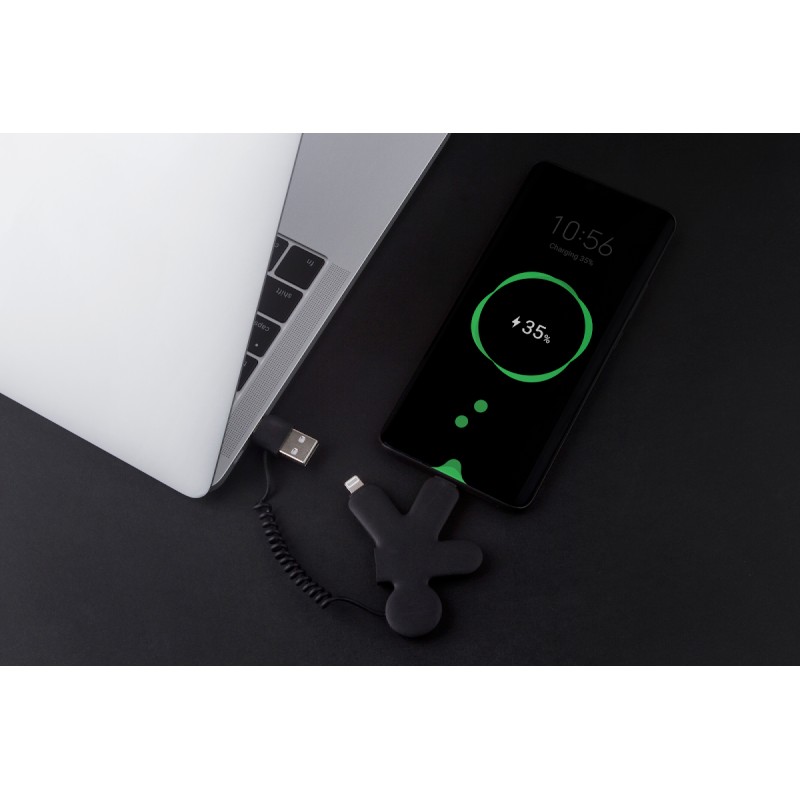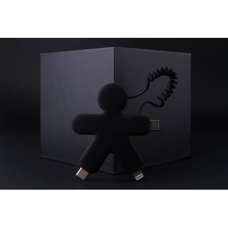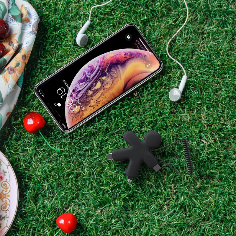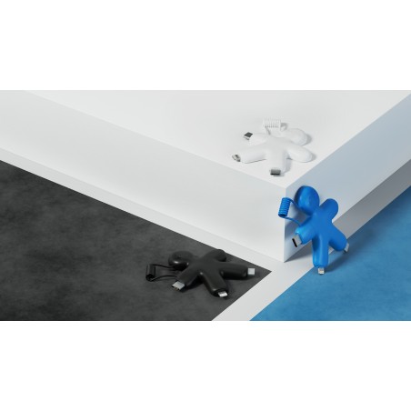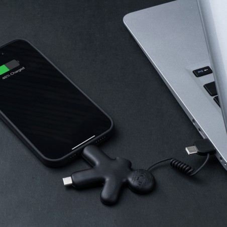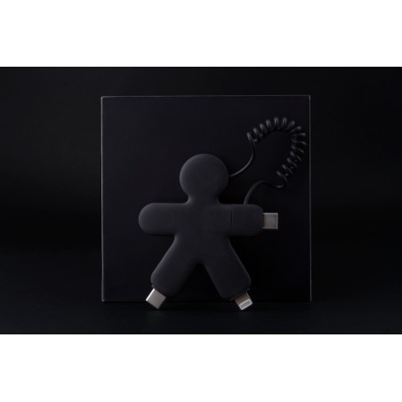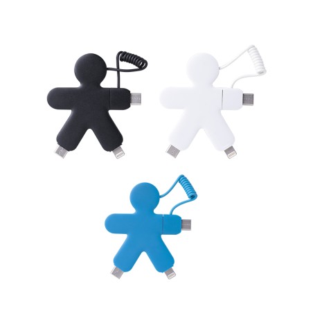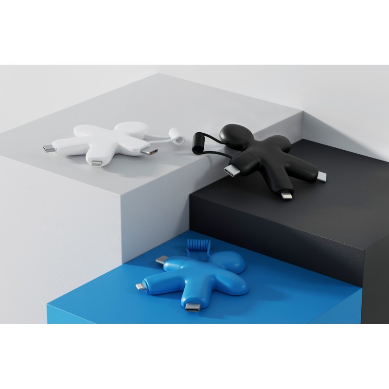 Ce câble multiconnecteur en forme de bonhomme, toujours prêt à recharger vos appareils, est développé dans une démarche de progrès.