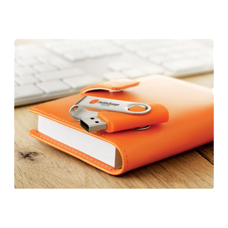 16GB USB 2.0 Flash Drive with protective metal cover. Rotate the cover and connect to USB port to start using it.
