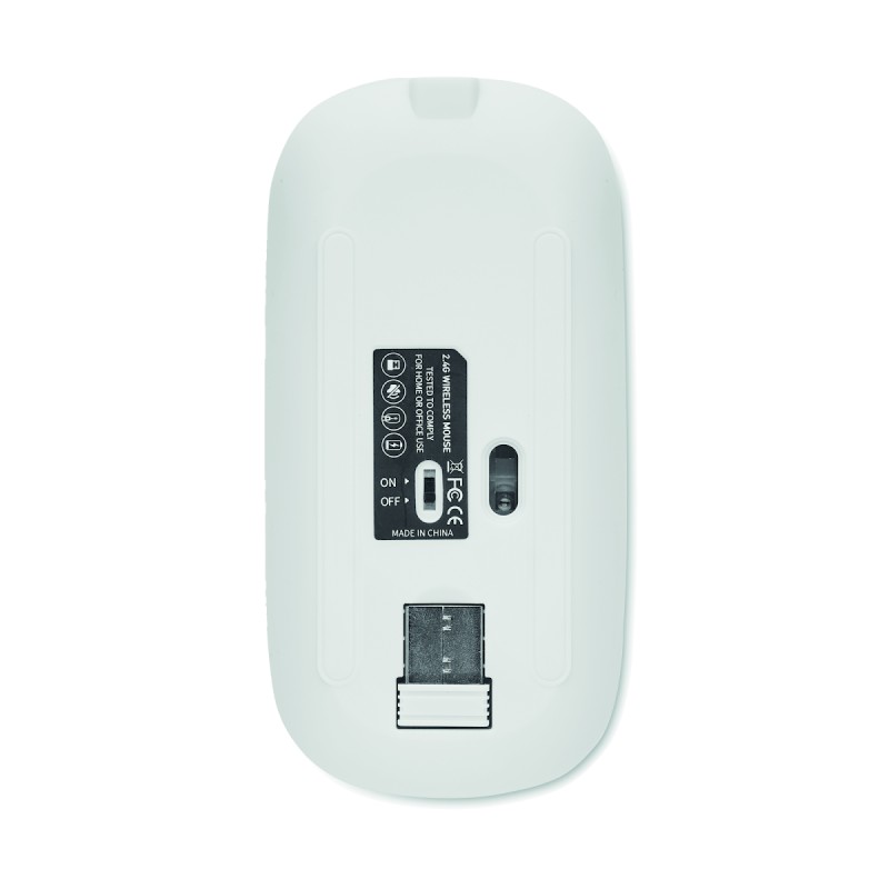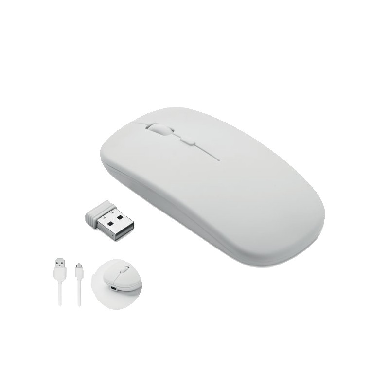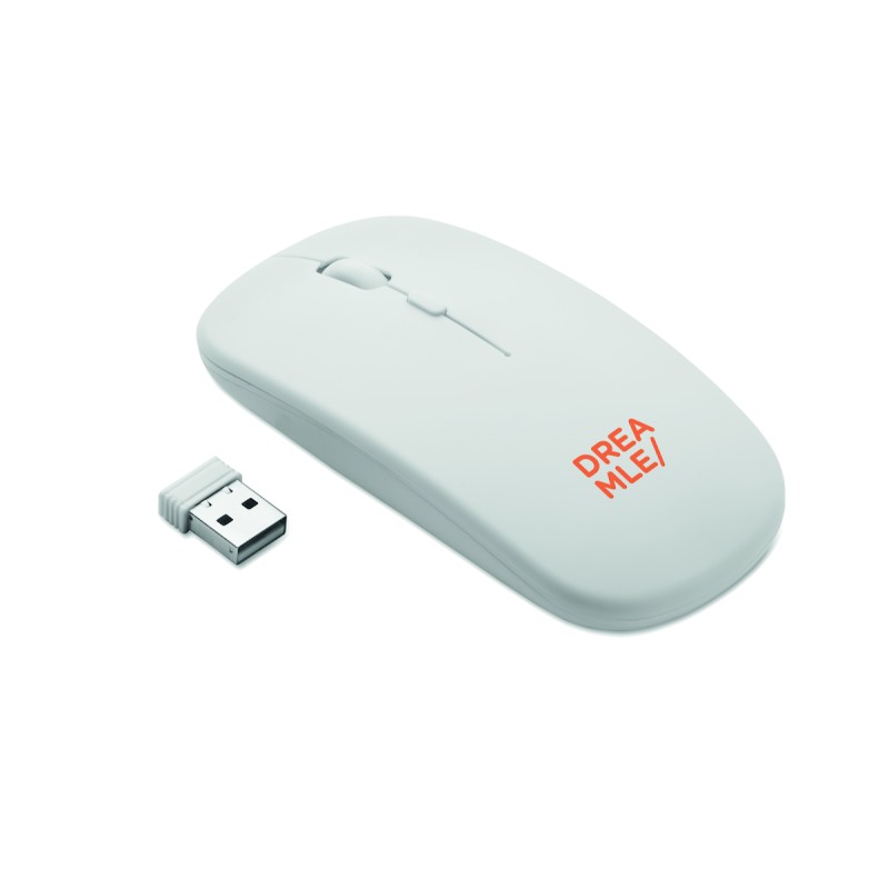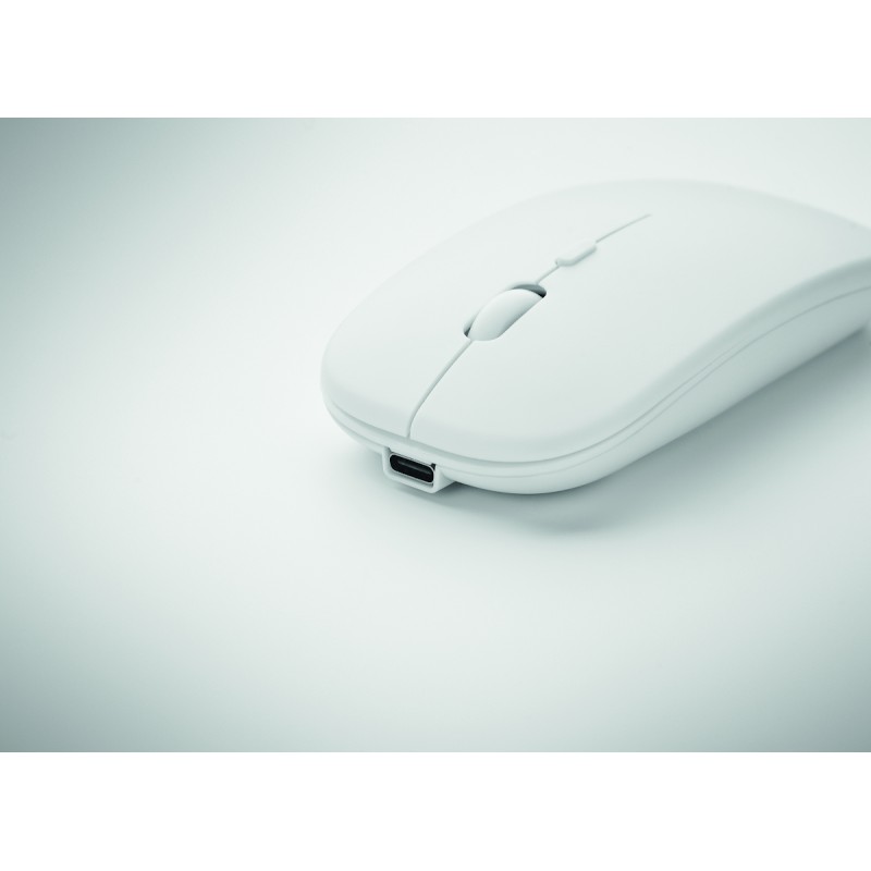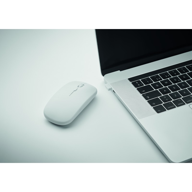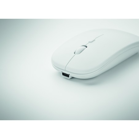 Souris optique sans fil en ABS recyclé avec batterie USB rechargeable de 500 mAh.