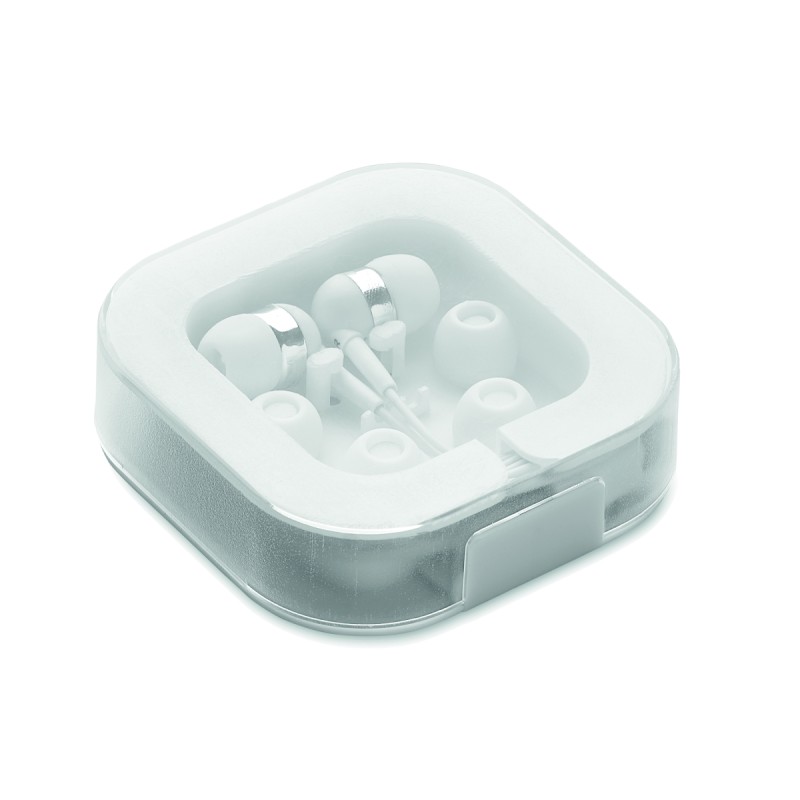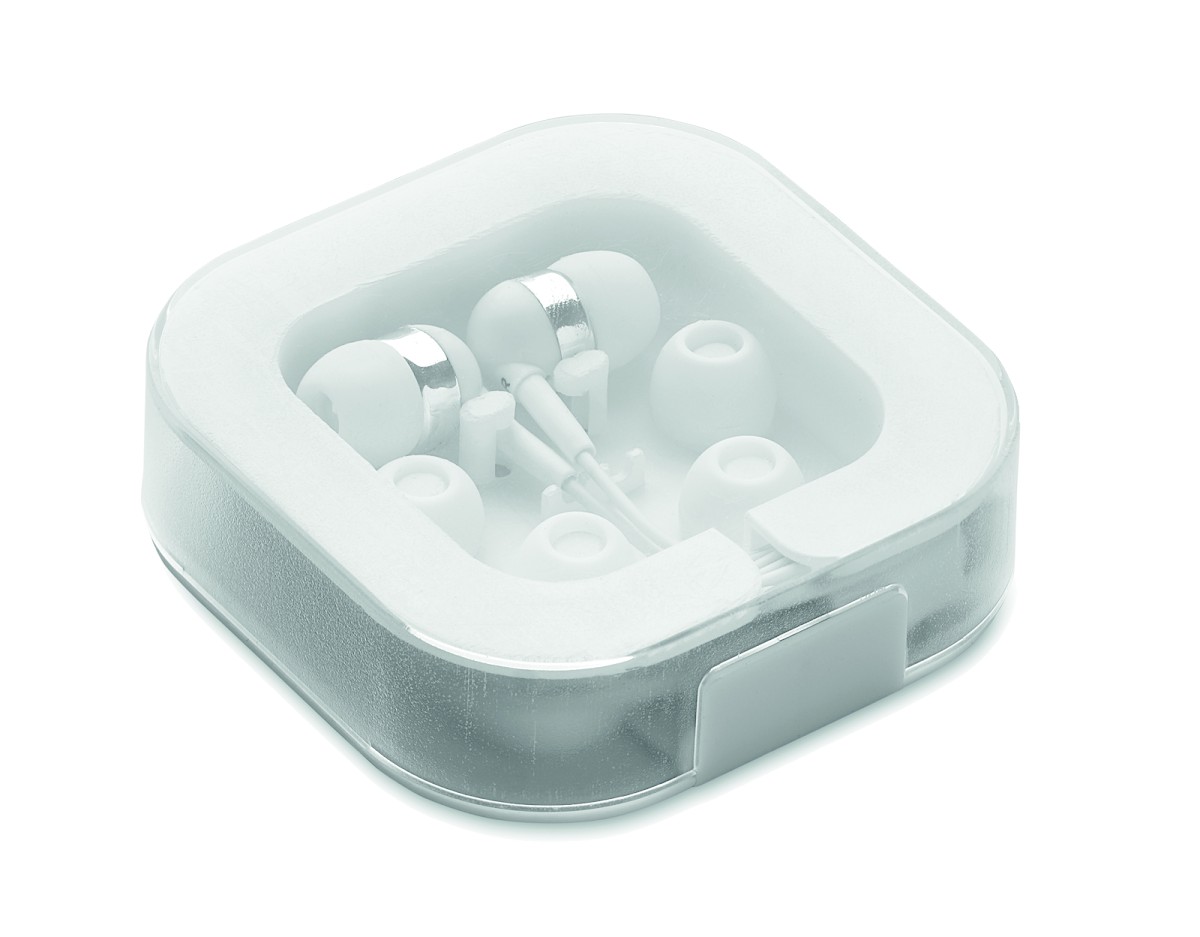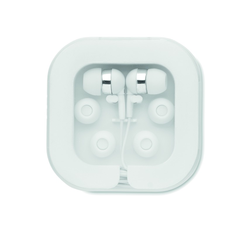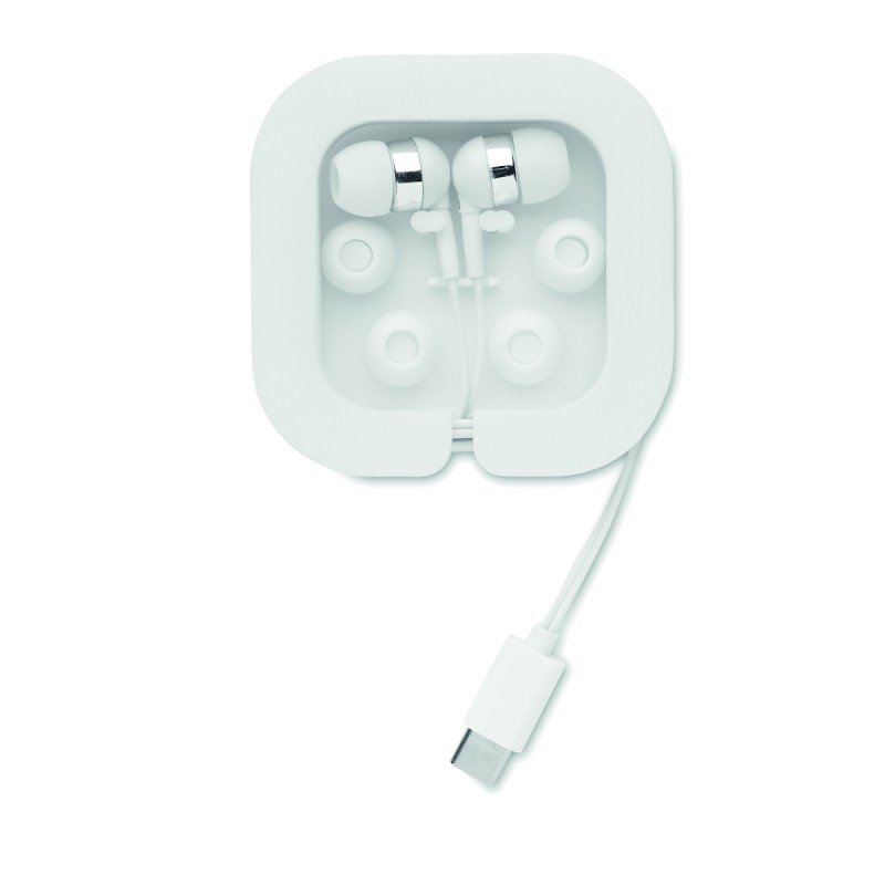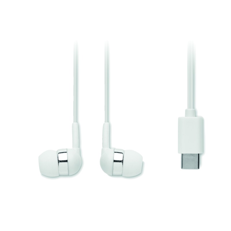 Écouteurs recouverts de silicone à réduction de bruit. Présentés dans une boîte en plastique où le câble de 120 cm peut être rangé. 3 housses en silicone de différentes tailles incluses. Connecteur : Type-C.