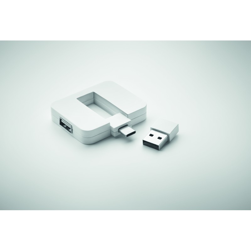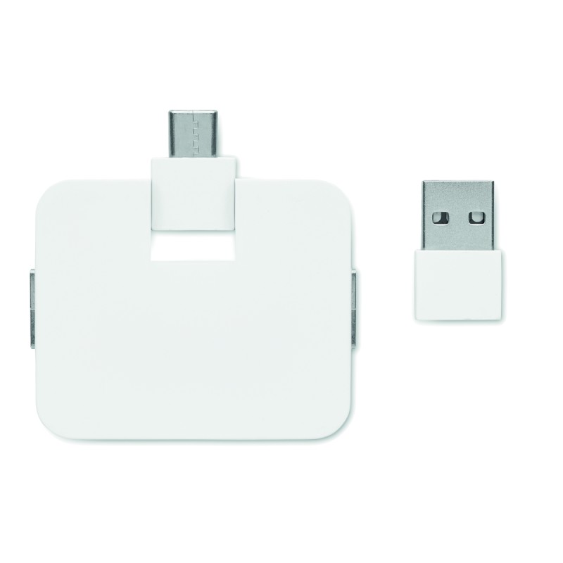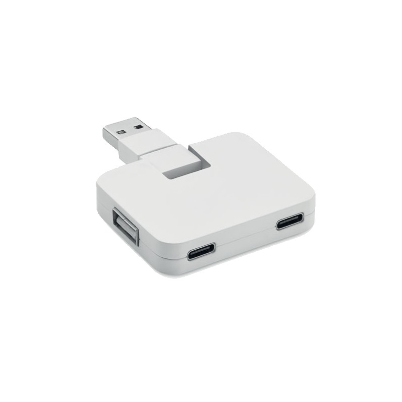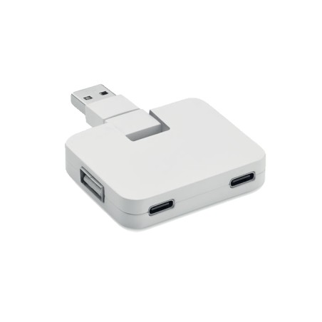 HUB 4 ports USB 2.0 en ABS. Sortie : 2 x Type-A et 2 x Type-C. Entrée : Type-C et Type-A.