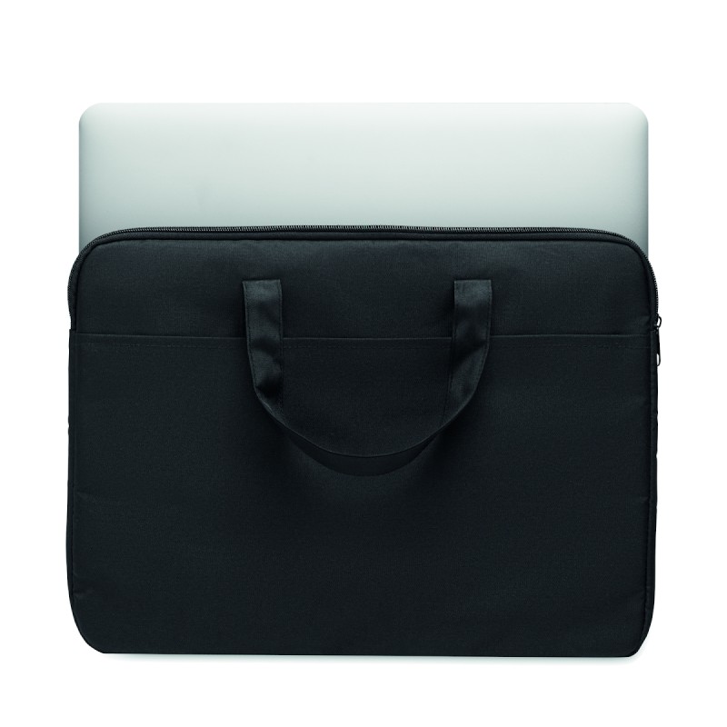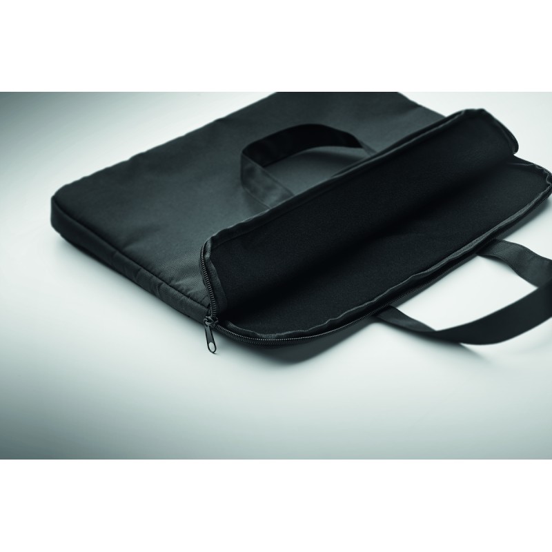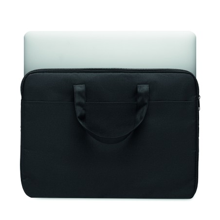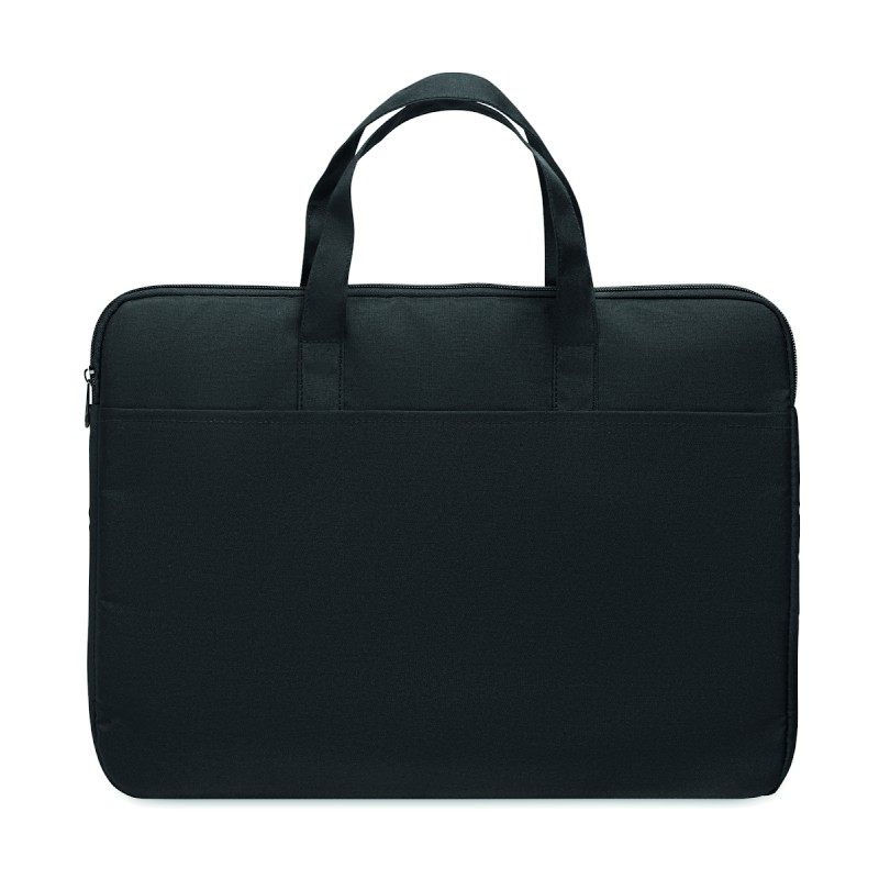 Sacoche pour ordinateur portable 15'' en polyester 300D RPET avec poignées et support pour trolley au verso.