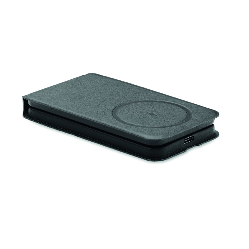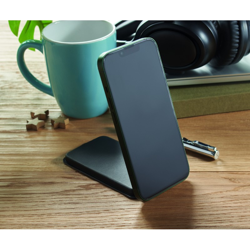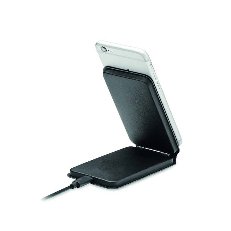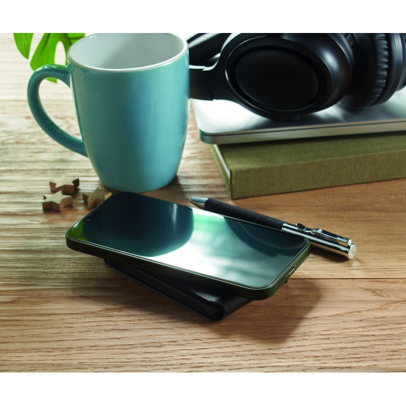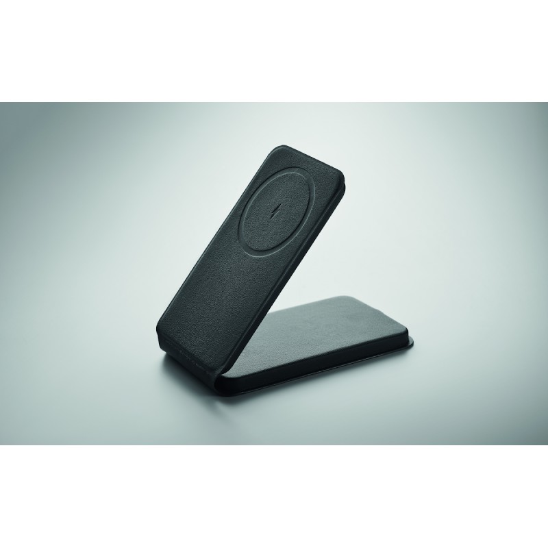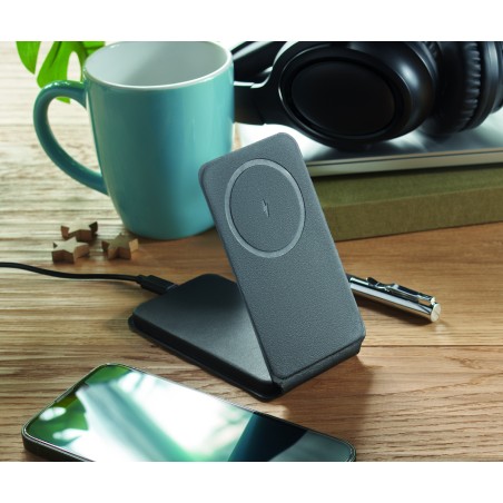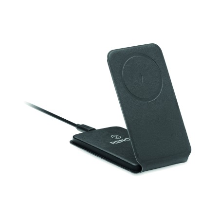 Chargeur sans fil pliable 15W avec support magnétique pour téléphone en 58% polyester recyclé et 42% PU.