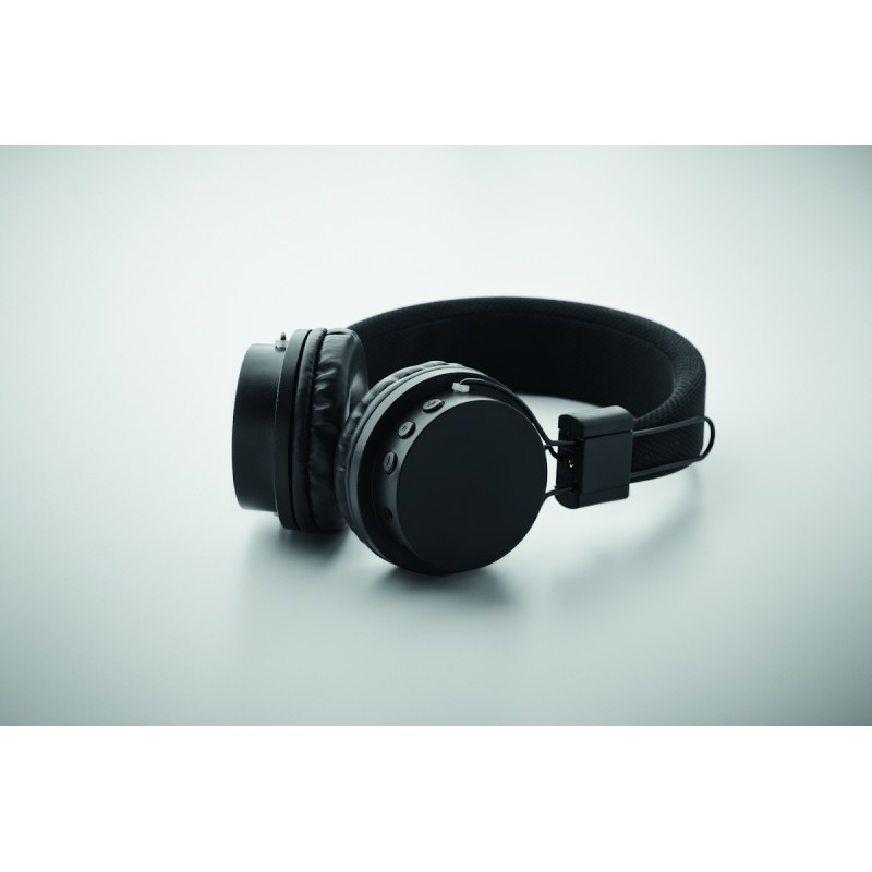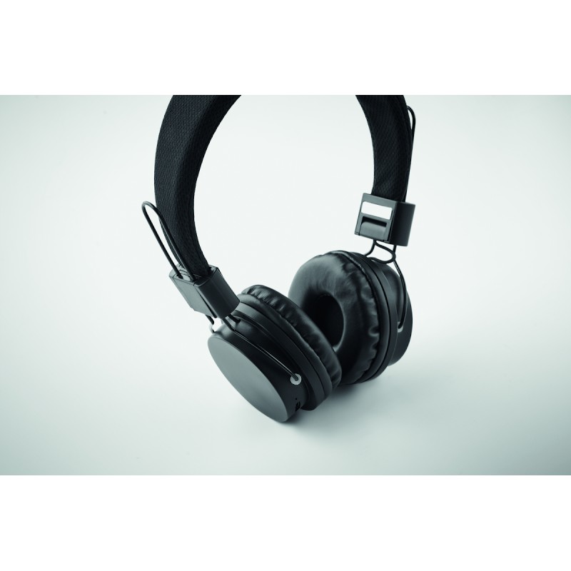 Casque sans fil pliable 5.4 en ABS. Fonction mains libres et microphone intégré. Autonomie d'environ 9 heures. Câble de chargement Type-C inclus. Batterie Li-ION rechargeable de 400 mAh. Portée : 10 m.