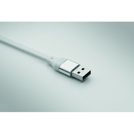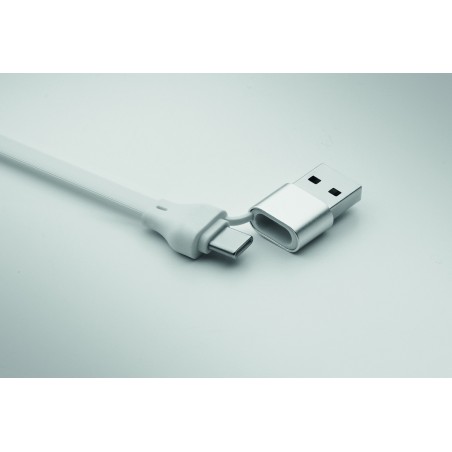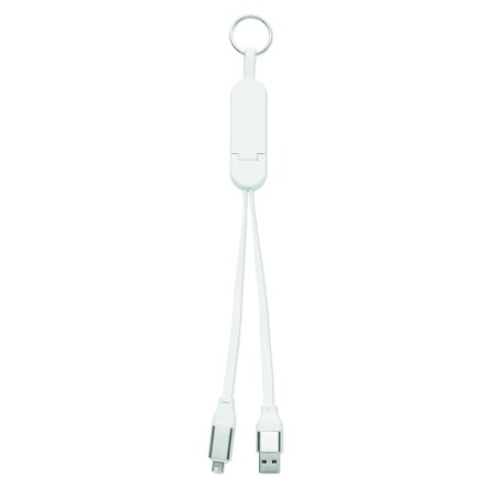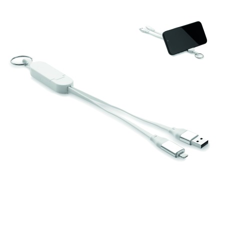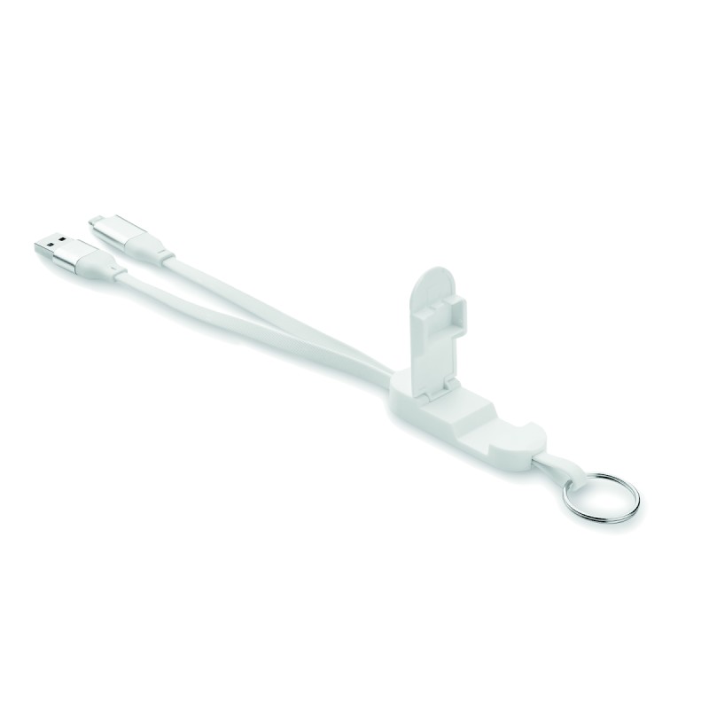Porte-clés en ABS et fonctionnalité de support de téléphone avec câble de chargement. Entrée : 2-en-1 Type-C & Type-A. Sortie : Type-C et micro-B (2 en 1 broche).