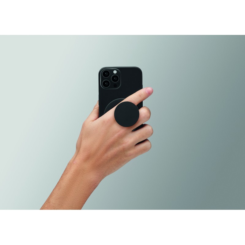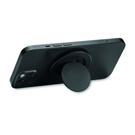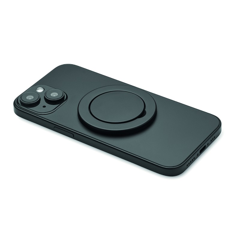 Support magnétique pour téléphone en ABS recyclé. Comprend un anneau métallique supplémentaire pour supporter les téléphones non magnétiques.