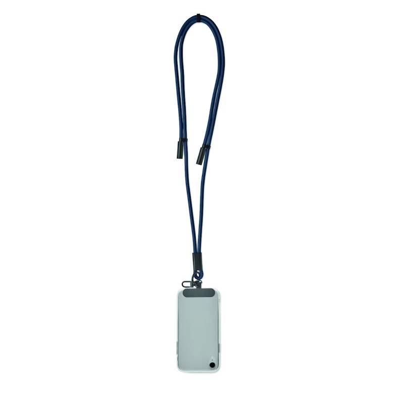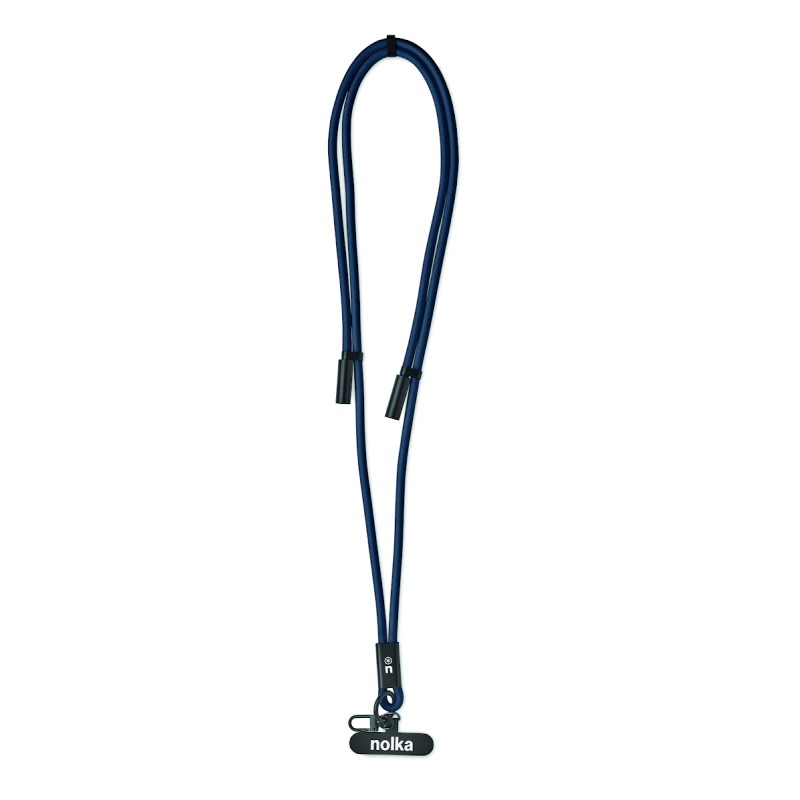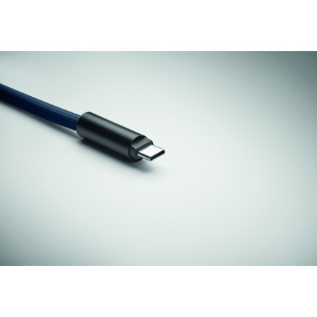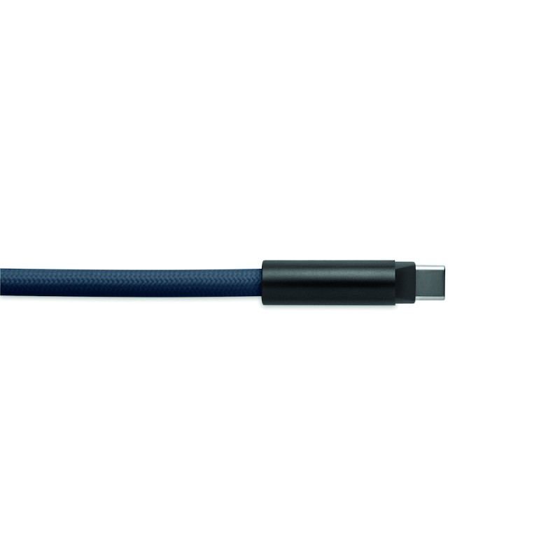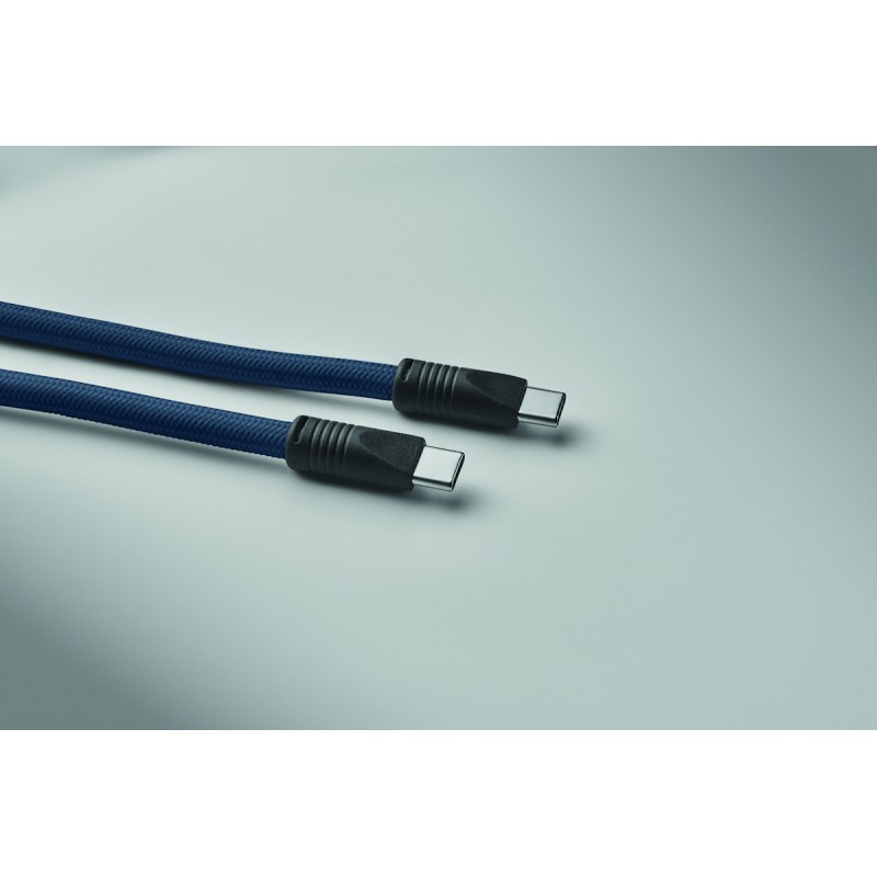 Cordon avec câble de charge et de transfert de données de 60W de type-C à type-C en RPET avec porte-cordon de téléphone et porte clés.