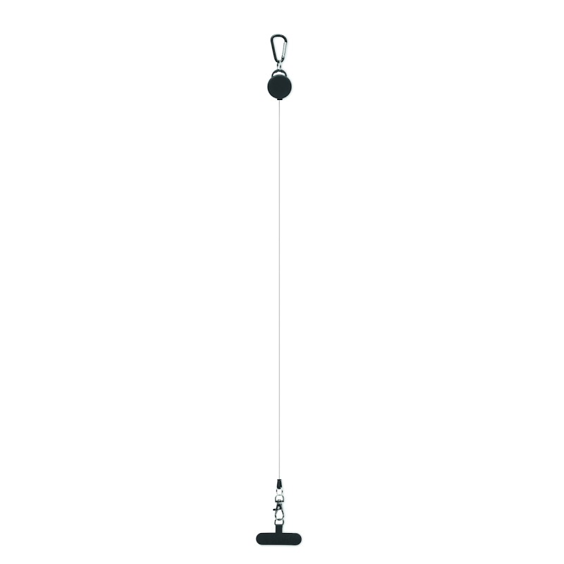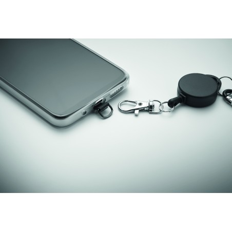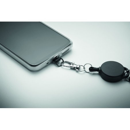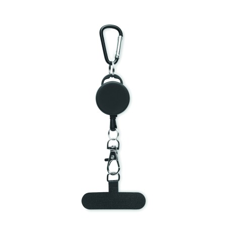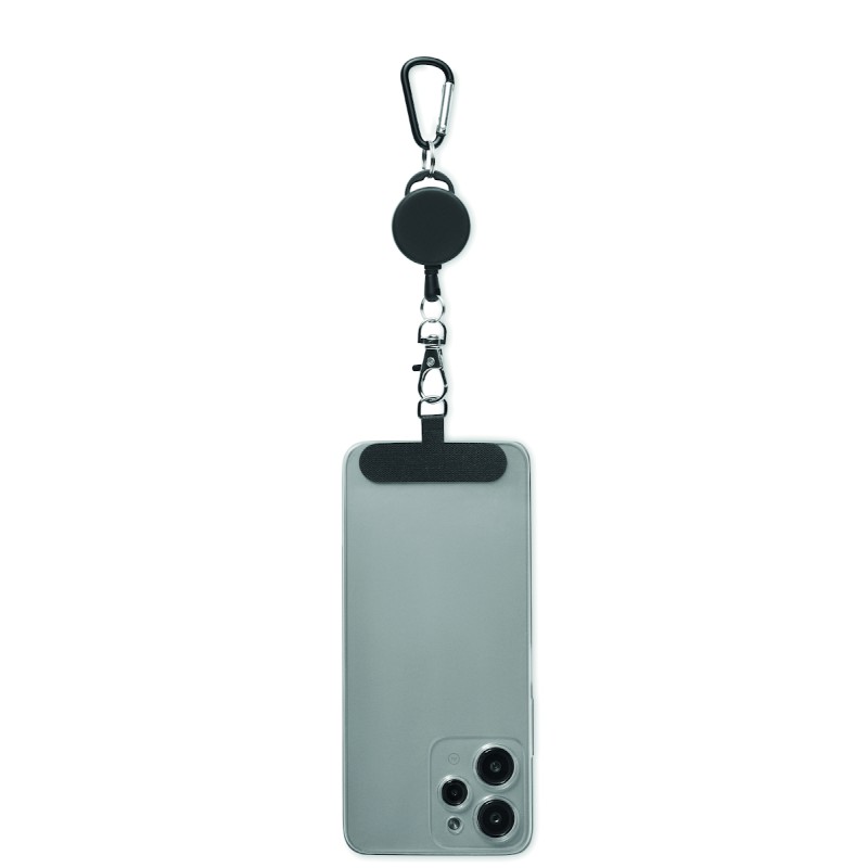 Porte-téléphone et/ou porte-badge rétractable en ABS avec mousqueton en aluminium. Le mousqueton n'est pas destiné à l'escalade (usage non professionnel).