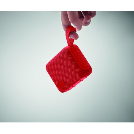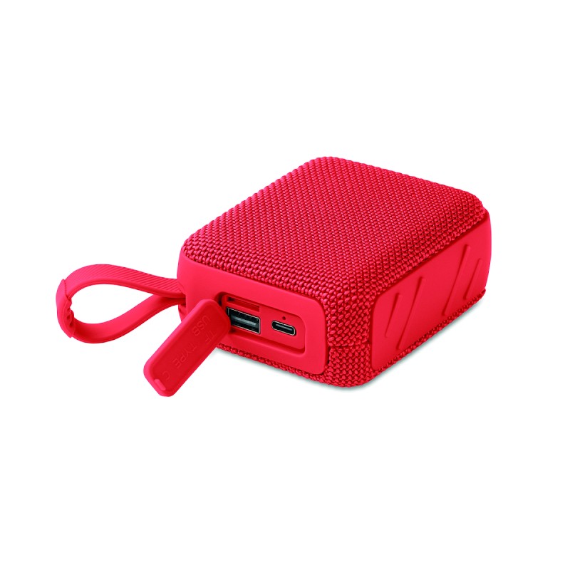 Haut-parleur 5.0 sans fil en ABS avec tissu RPET et cordon de suspension. 1 Batterie rechargeable Li-ION 800 mAh incluse. Comprend un port pour carte SD et un câble AUX/USB. Données de sortie : 5W, 3 Ohm et 5V. Durée d'écoute : environ 3 heures