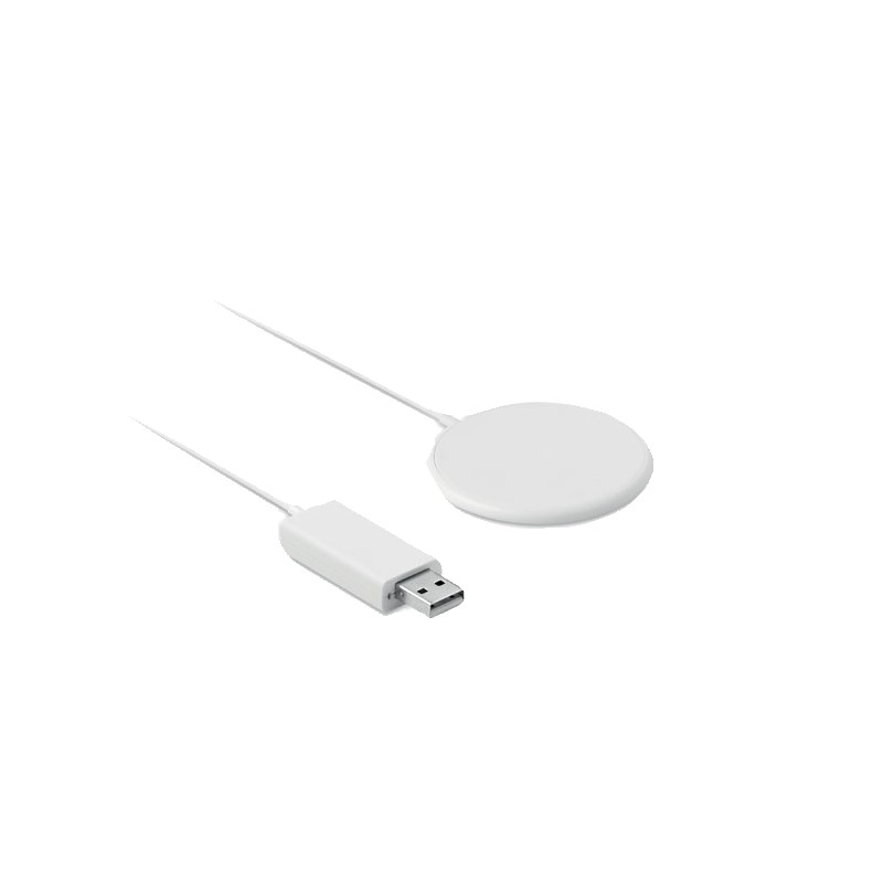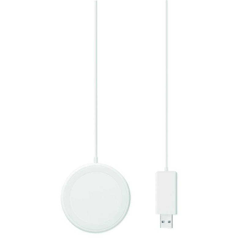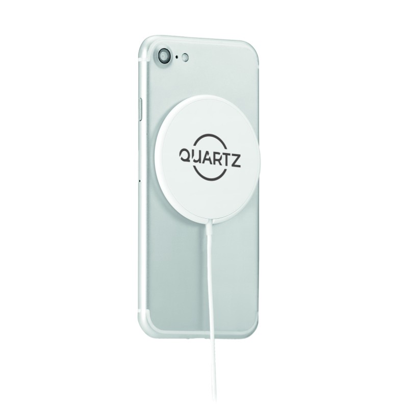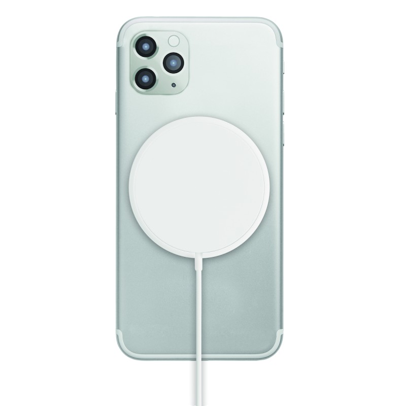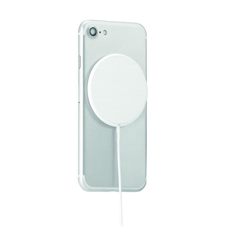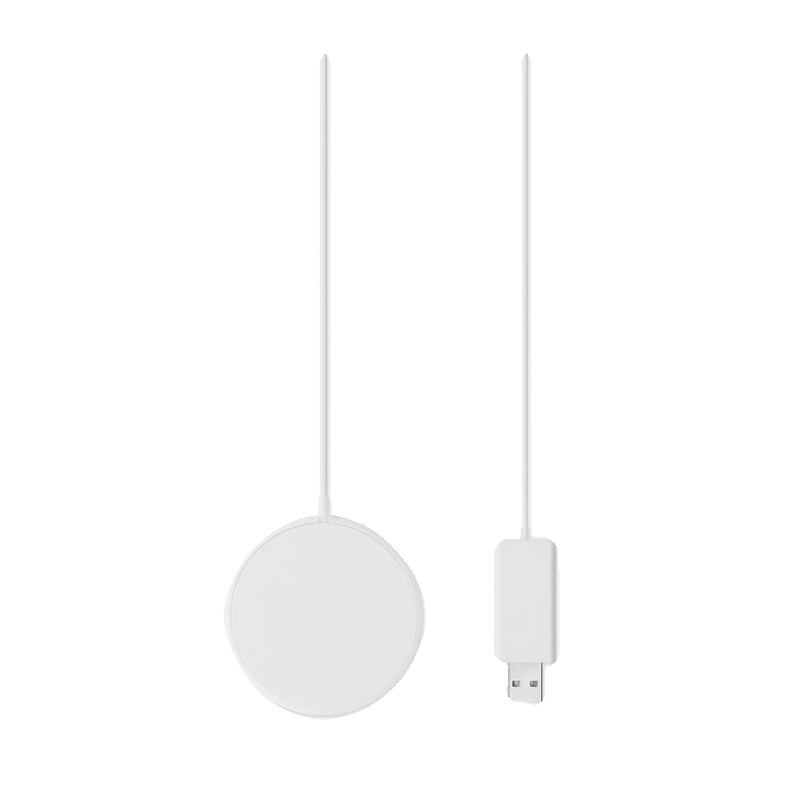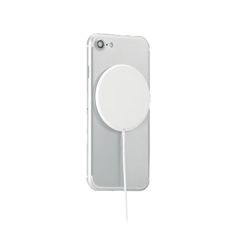 Chargeur sans fil magnétique en ABS. Sortie : DC 9V/1.1A (10W) pour une charge rapide. Comprend un anneau métallique magnétique supplémentaire pour prendre en charge la charge d'autres téléphones non magnétiques rechargeables sans fil.