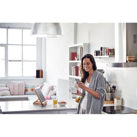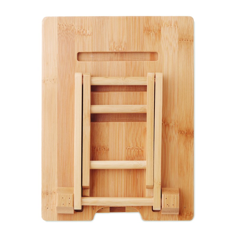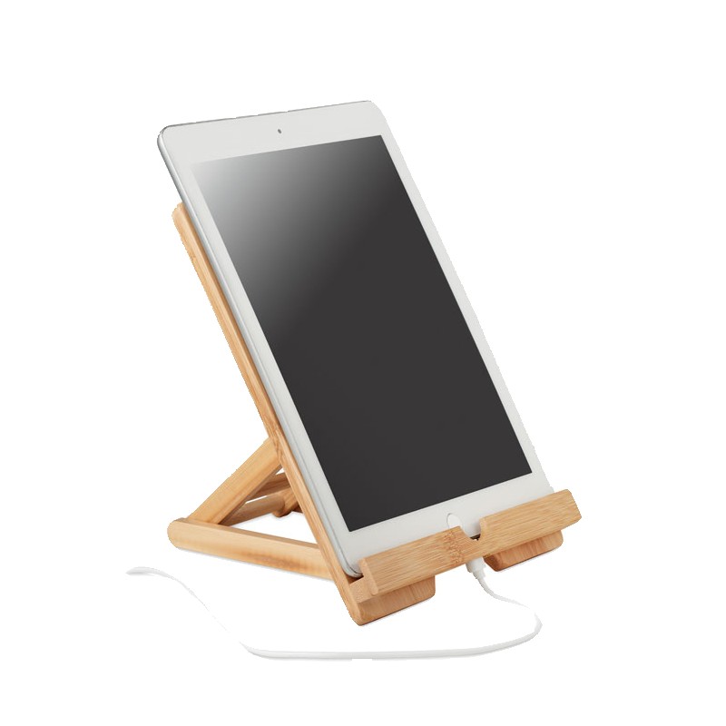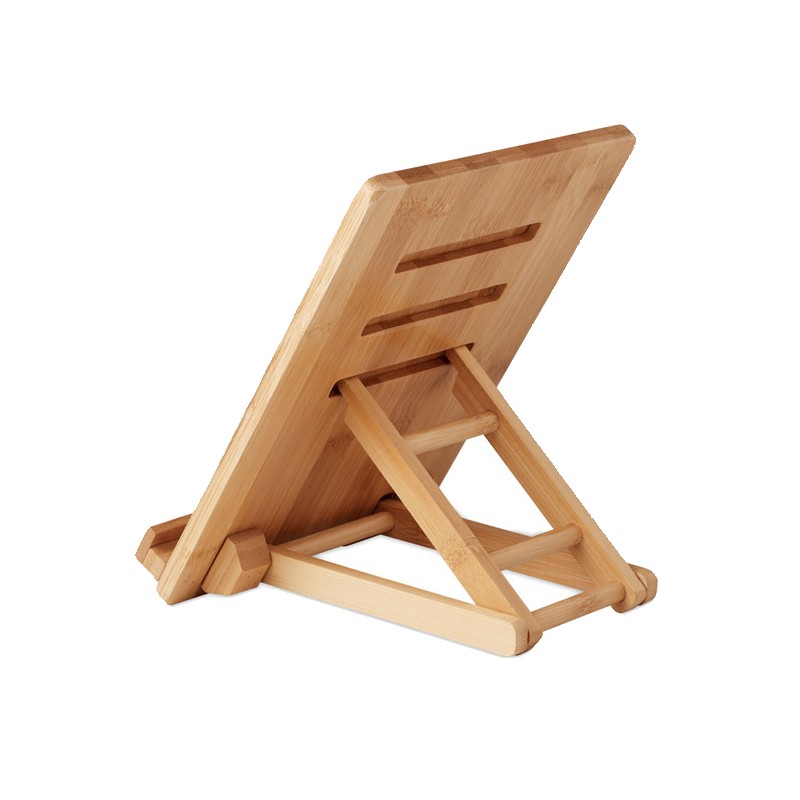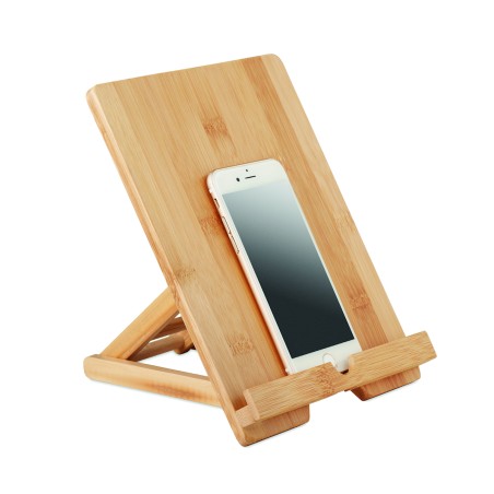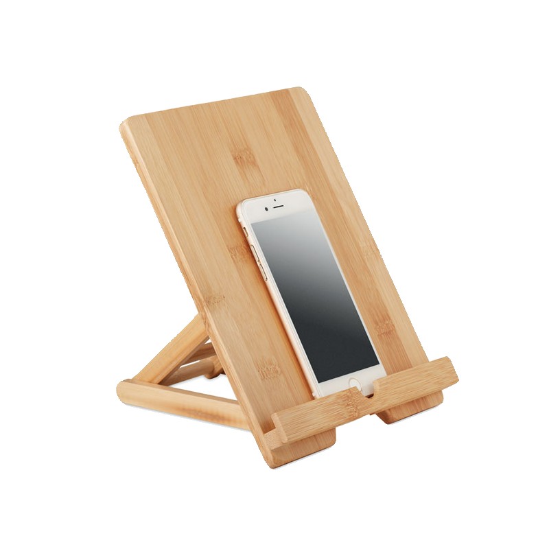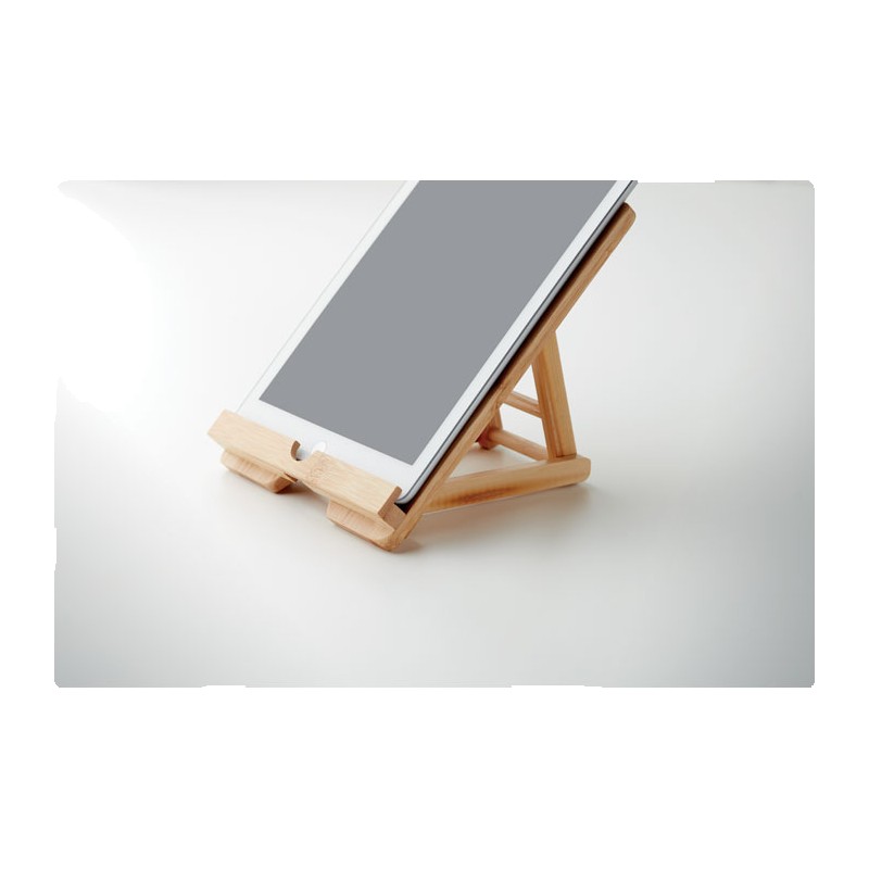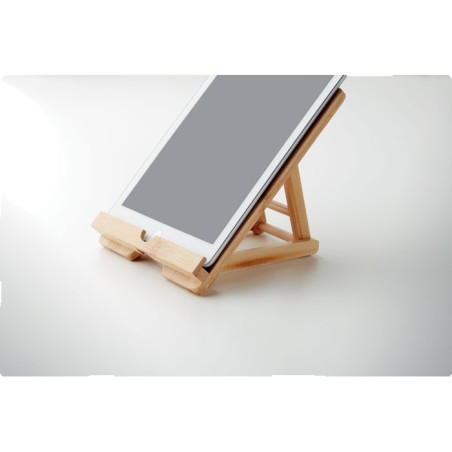 Support pliable pour tablette ou smartphone en bambou. Le bambou est un produit naturel, et présente de légères variations de couleur, de décoration et de tailles.