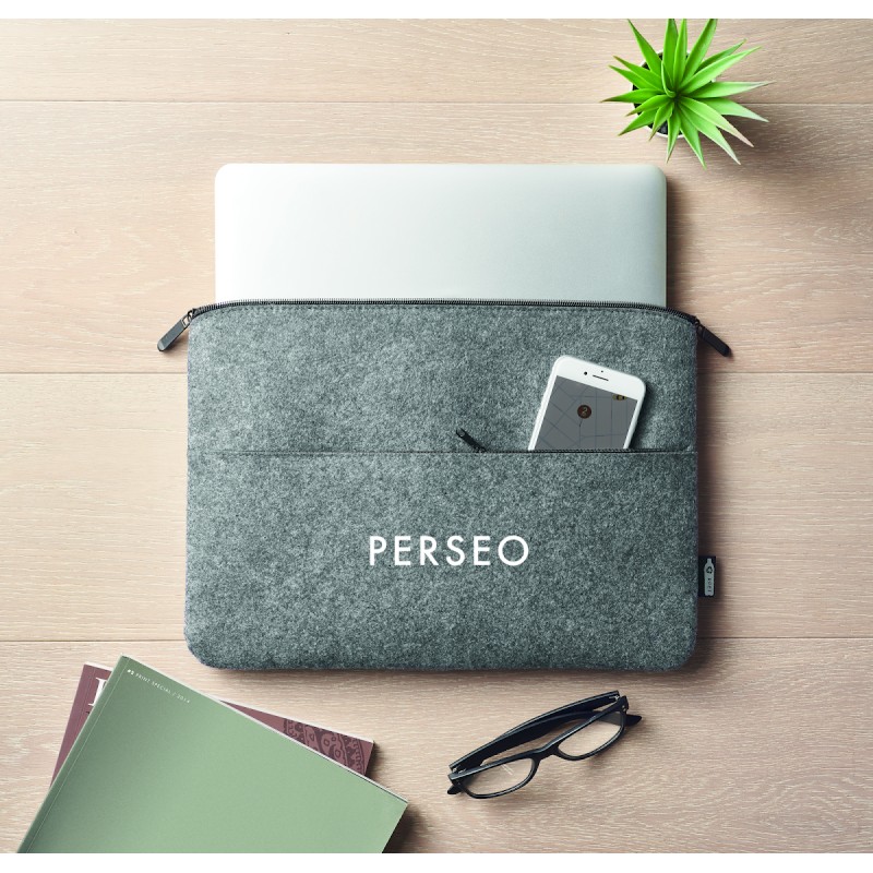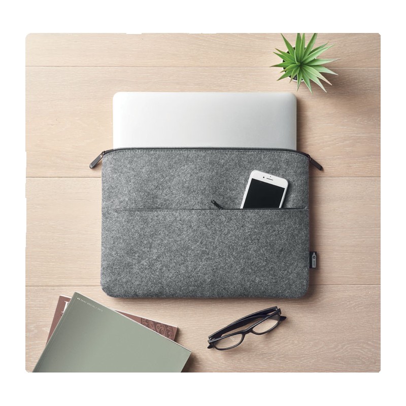 Sacoche pour ordinateur portable 14 pouces en feutre RPET avec poche frontale zippée.