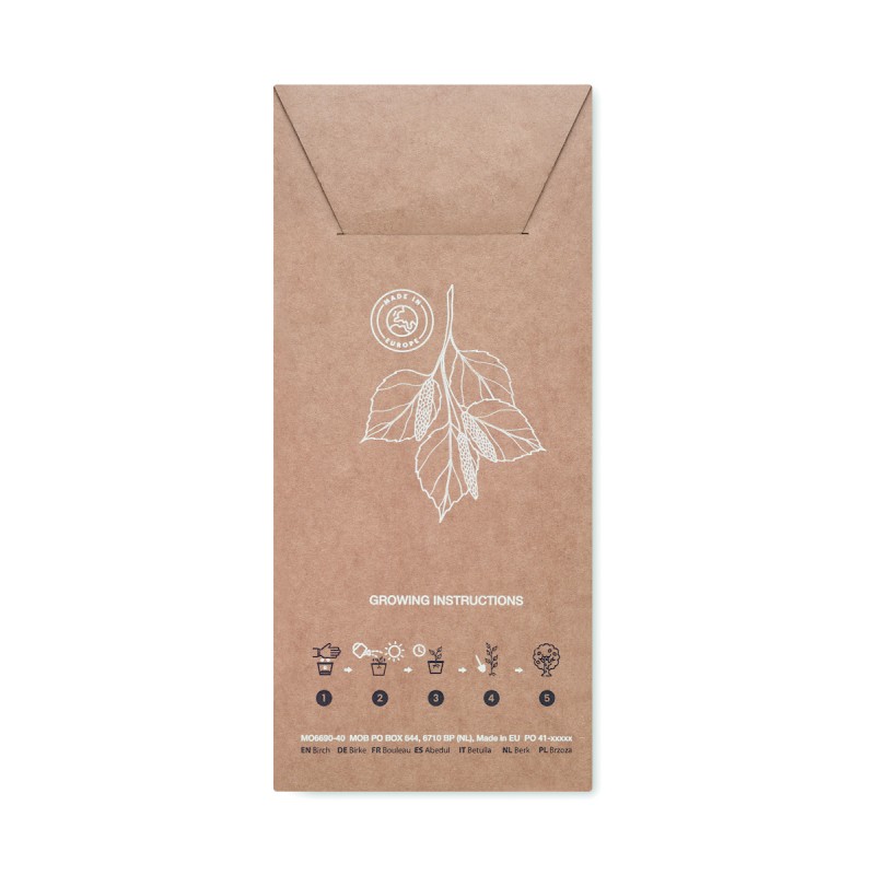 Support de téléphone en bouleau. 2 parties, à monter. Comprend des graines de bouleau qui peuvent être plantées et les arbres pousseront d’environ 30 cm par an. Fabriqué dans l'UE. Grâce aux graines de pin utilisées, vous pouvez redonner à la terre tout en mettant en valeur votre entreprise de manière durable. Apportez une nouvelle vie à la planète en utilisant ces graines.