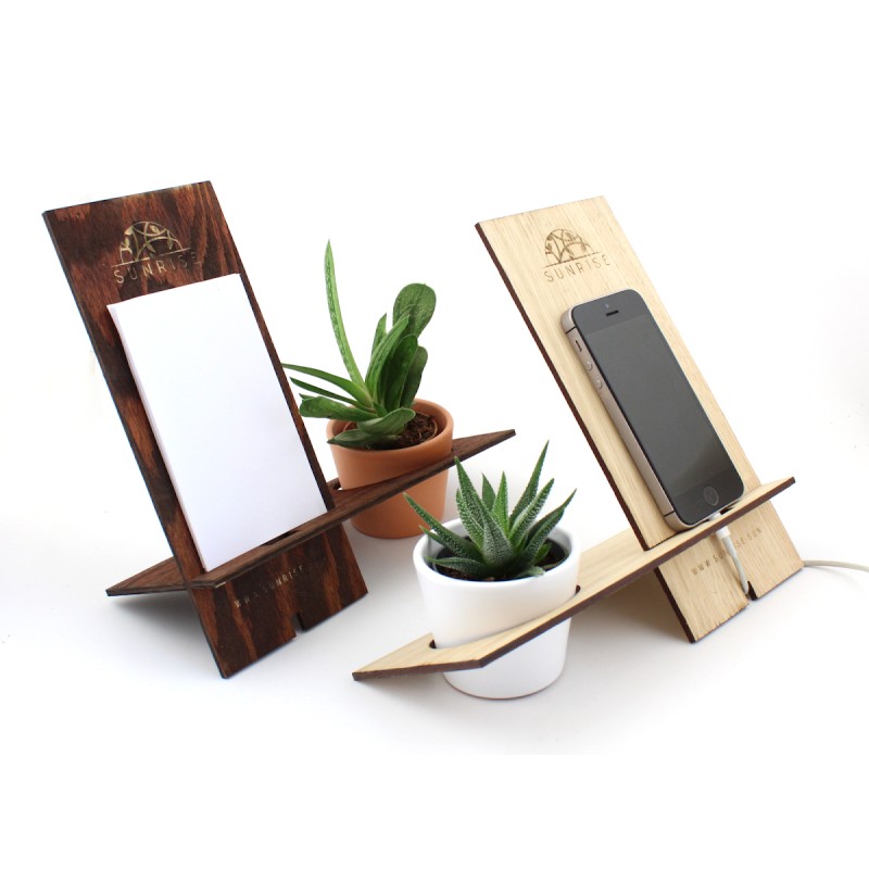 Support téléphone bois de pin avec plante