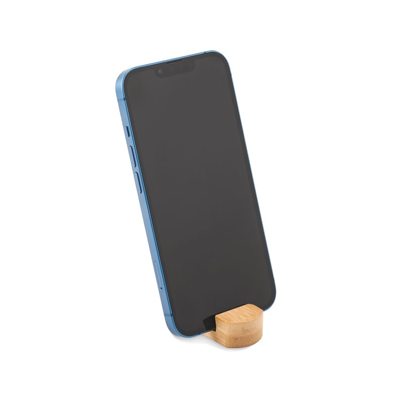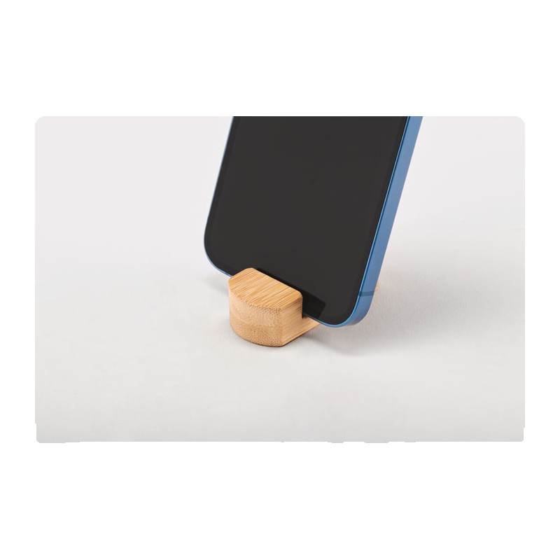 Mini support pour smartphone en bambou. Le bambou est un produit naturel, et présente de légères variations de couleur, de décoration et de tailles.