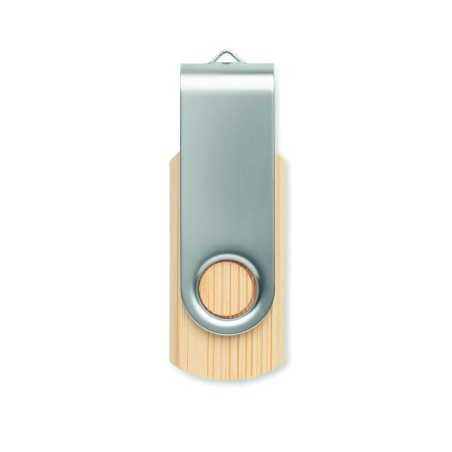 Clé USB de 16 Go avec boîtier en bambou et couvercle métallique de protection. Faites pivoter le couvercle et connectez-le à un port USB pour commencer à l'utiliser.