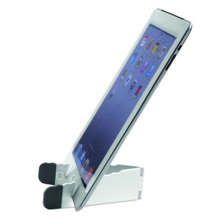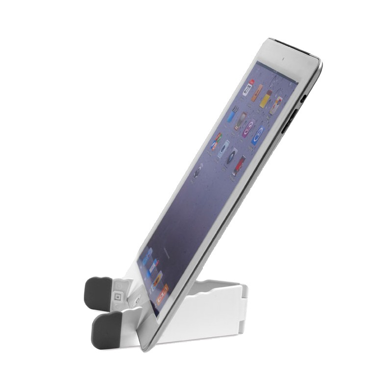 Support pliable pour tablette graphique et smartphone en ABS blanc avec couvercle silicone gris.