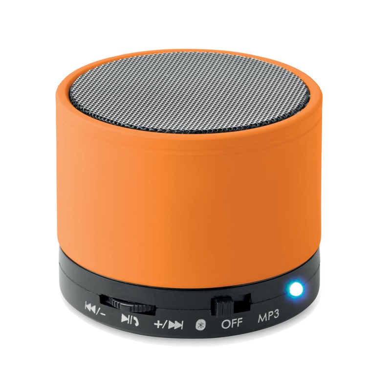 Haut-parleurs sans fil 5.3 en ABS en finition caoutchoutée. Batterie rechargeable lithium 450 mAh . Comprend un port de carte SD et un câble AUX / USB. Fonction appel Mains libres. Output data: 3W, 3 Ohm et 5V.