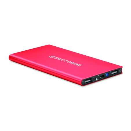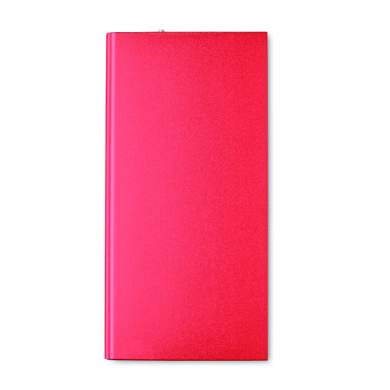 Power bank de 8000mAh en aluminium recyclé. Convient aux smartphones, courant sortant de DC5V/1A et DC5V/2A. Inclut un témoin lumineux, un câble USB avec prise micro USB.
