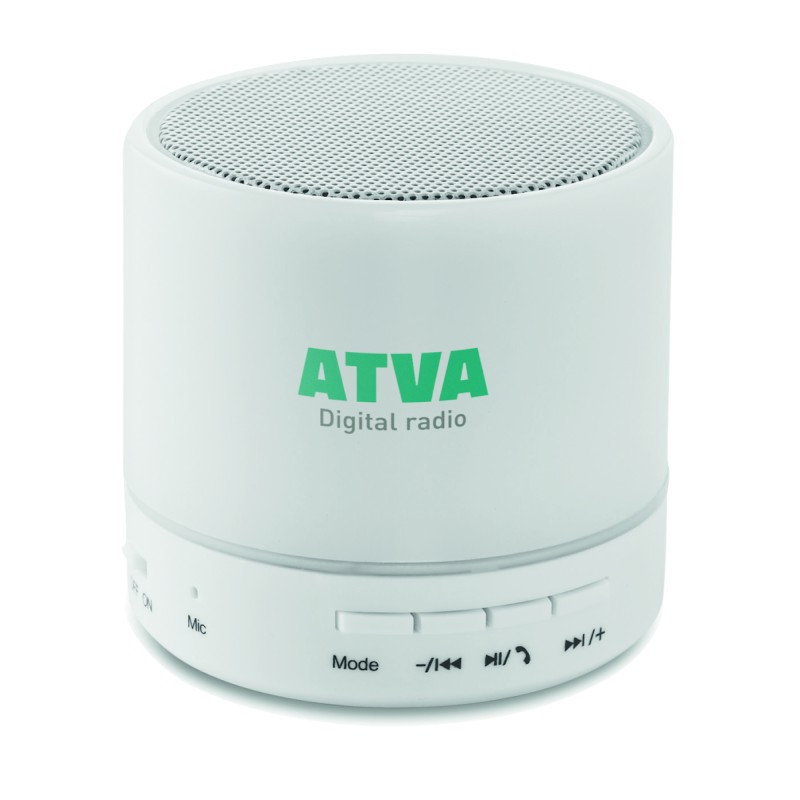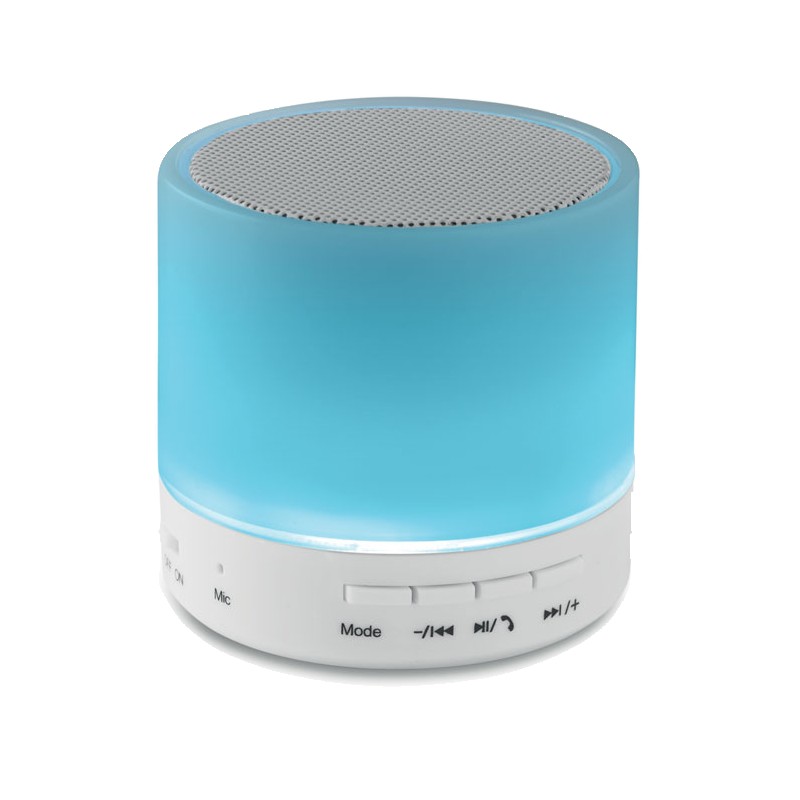 Haut-parleur sans fil 2.1 en ABS finition caoutchoutée. Indicateurs LED 3 couleurs. Fonctions mains libres, port carte SD (non incluse) et câble AUX/USB inclus. Batterie lithium 500 mAh rechargeable. Sortie : 3W, 4 Ohm.