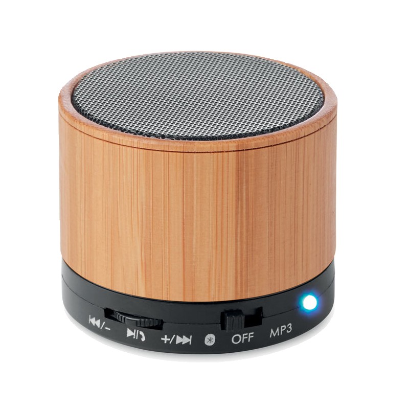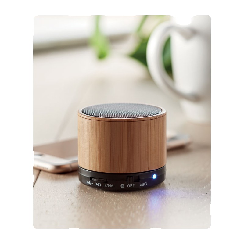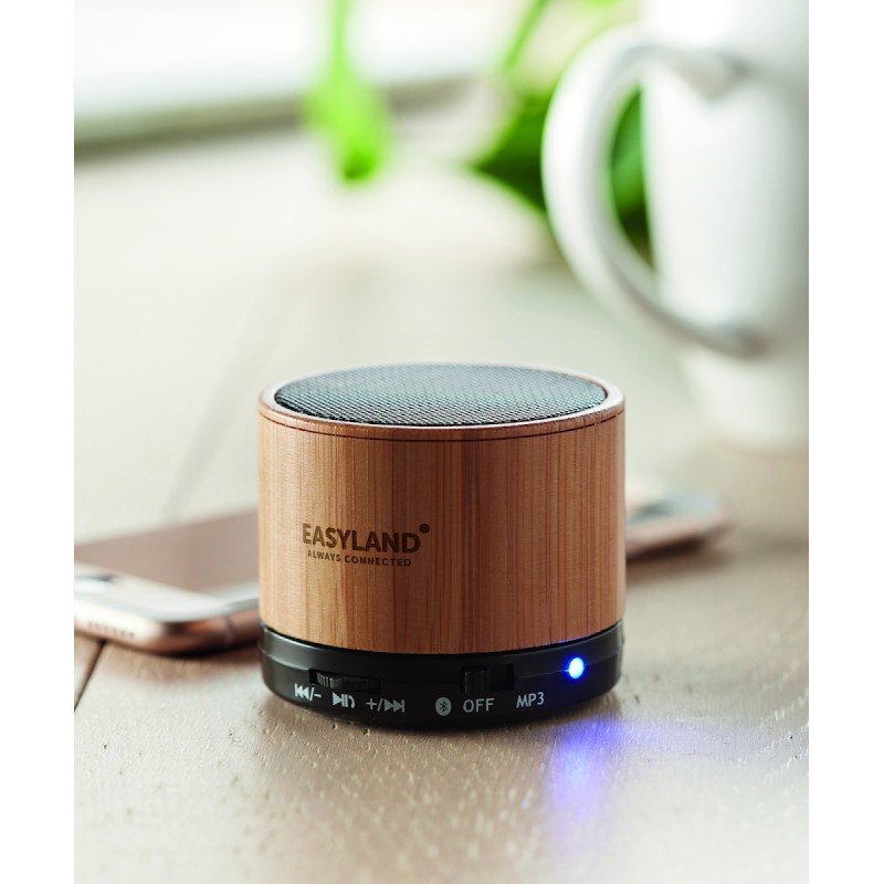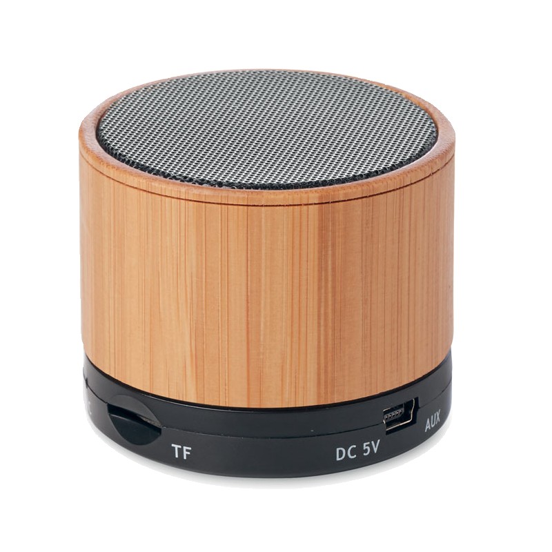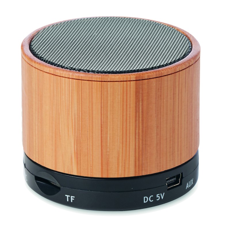 Haut-parleur sans fil 4.2 en ABS avec boîtier bambou. 1 pile rechargeable lithium 450 mAh incluse. Port de carte SD et un câble AUX / USB. Fonction appel mains libres. Sortie: 3W, 3 Ohm et 5V. Le bambou est un produit naturel, et présente de légères variations de couleur, de décoration et de tailles.