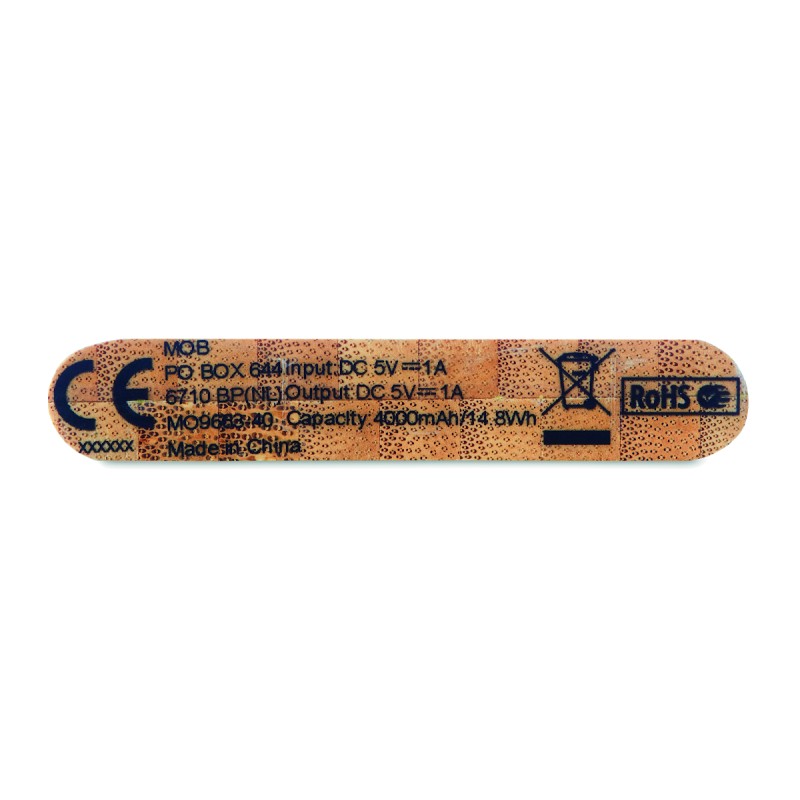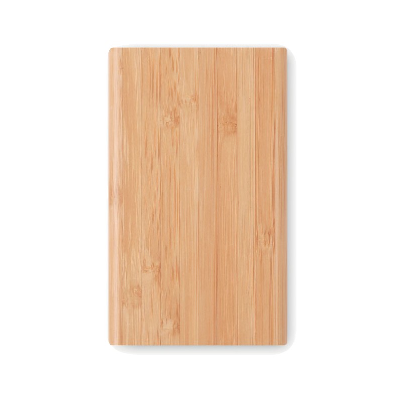 Powerbank 4000 mAh dans un boîtier en bambou. Convient aux smartphones, sortie DC5V / 1A . Comprend un voyant et un câble USB avec prise micro USB. Connecteur de type C inclus. Le bambou est un produit naturel, et présente de légères variations de couleur, de décoration et de tailles.