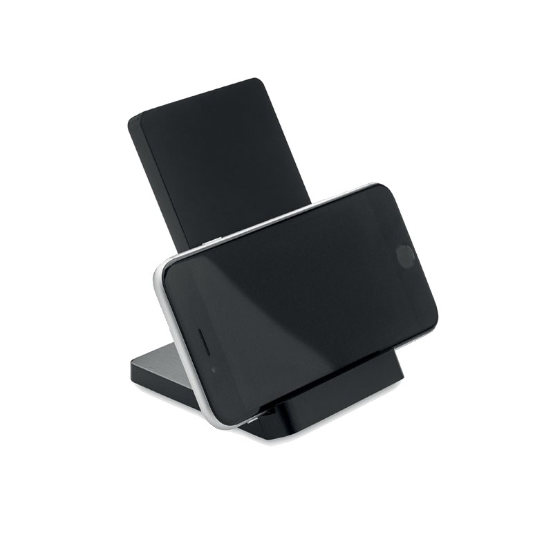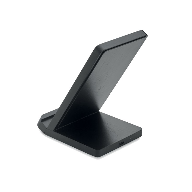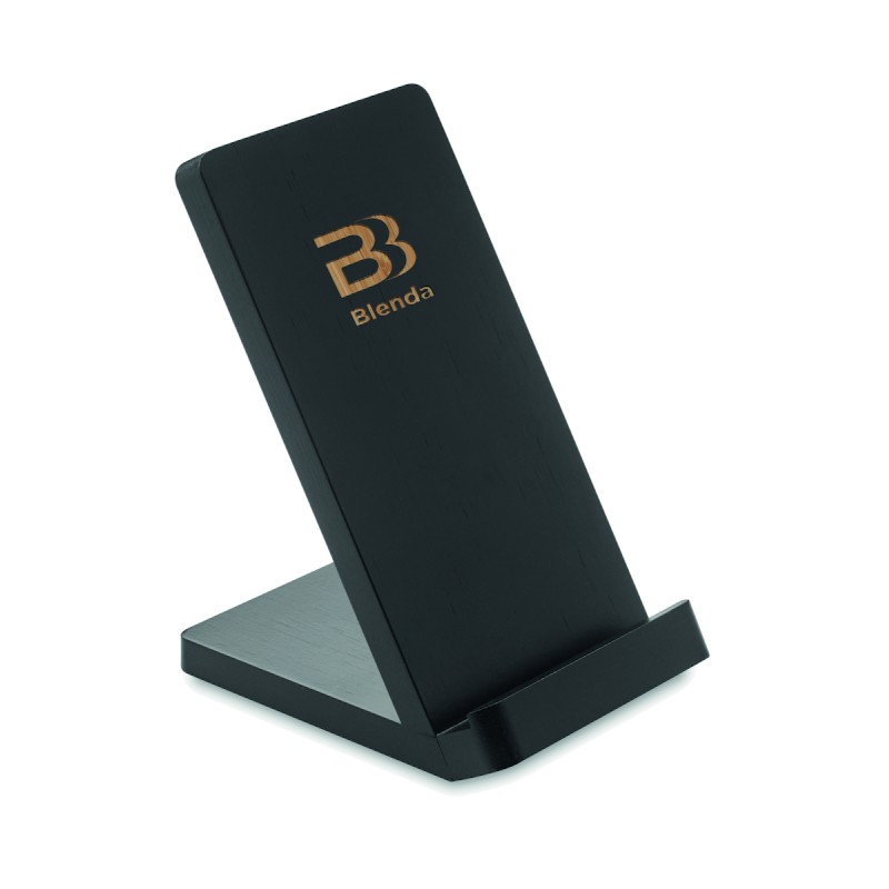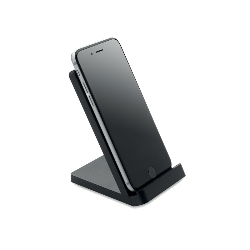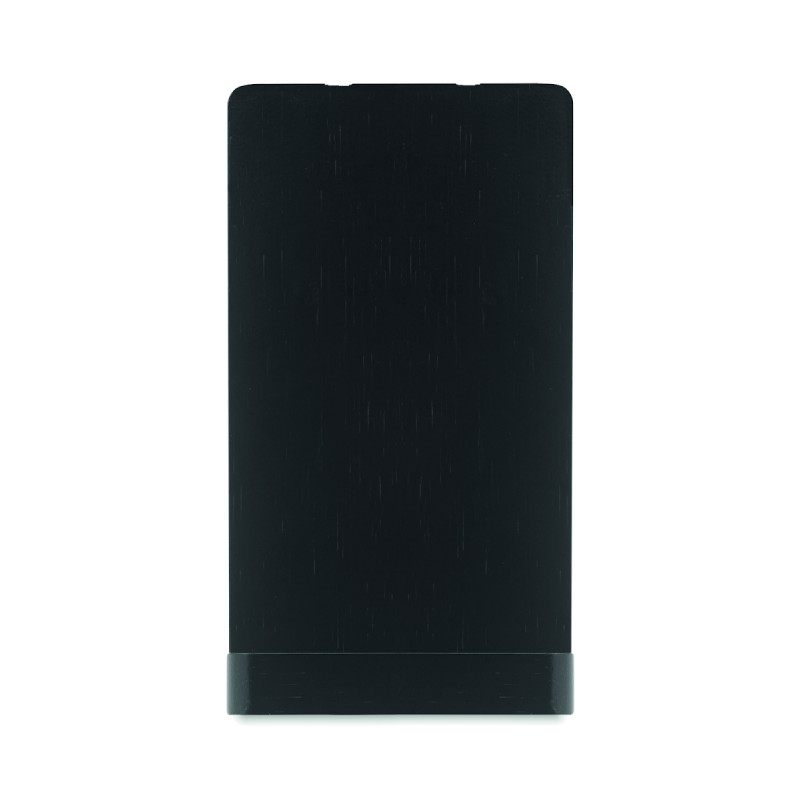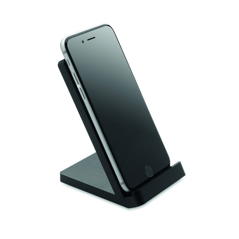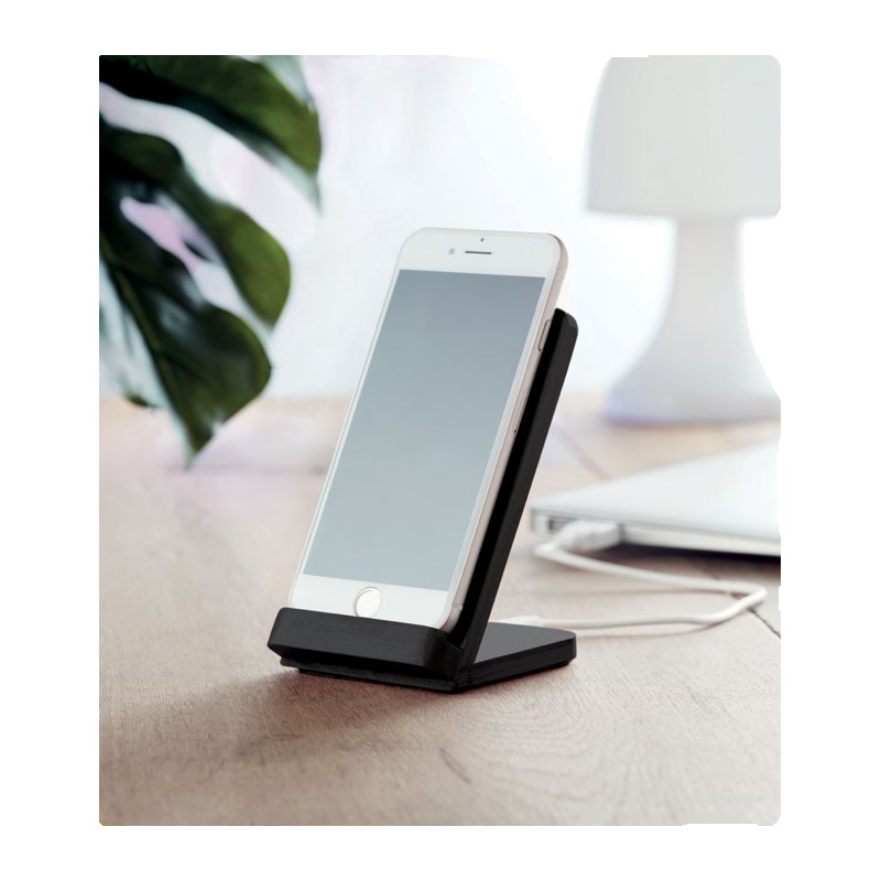 Chargeur sans fil à double bobine pour 1 appareil dans un boîtier en bambou et avec fonctionnalité de support. Sortie: DC5V/1A (5W). Le bambou est un produit naturel, et présente de légères variations de couleur, de décoration et de tailles.