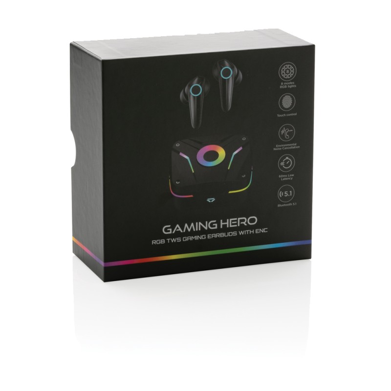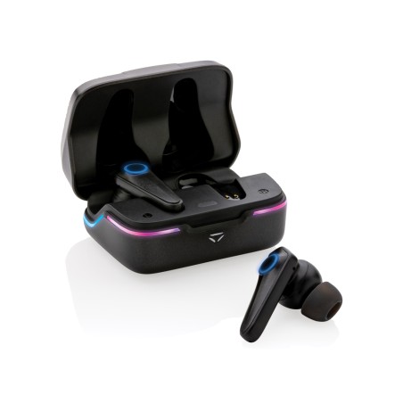 Devenez un héros du jeu avec ces écouteurs de haute qualité conçus pour les joueurs sérieux. Avec un mode de jeu à faible latence de 60 ms pour jouer à des jeux vidéo sans délai entre votre écran et le son que vous entendez. Contrôle tactile complet pour utiliser les écouteurs pendant vos sessions de jeu. ENC intégré pour des appels et des communications d'une clarté exceptionnelle pendant le jeu, avec micro intégré. Les lumières RGB intégrées qui peuvent être réglées dans différents modes. Avec BT 5.1 pour un fonctionnement fluide et une distance allant jusqu'à 10 mètres. Étanchéité de niveau IPX 4. Durée de lecture jusqu'à 6 heures et rechargement des oreillettes en 1 heure et l'étui de chargement est rechargé en 2 heures. 3 tailles d'oreillettes incluses. L'article et le câble sont sans PVC.