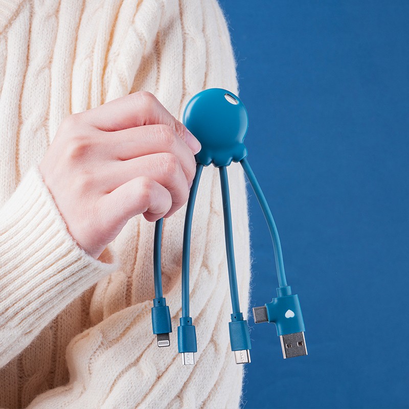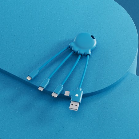 1er câble de la marque Xoopar, l'Octopus continue à trouver sa place auprès des utilisateurs grâce à ses connecteurs et son côté fun et pratique! Découvrez sa version Ocean Bound Plastic, fabriquée à partir de plastique recyclé récolté à 50 km des côtes