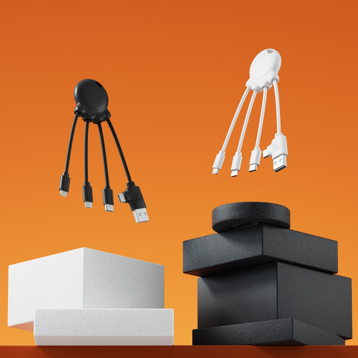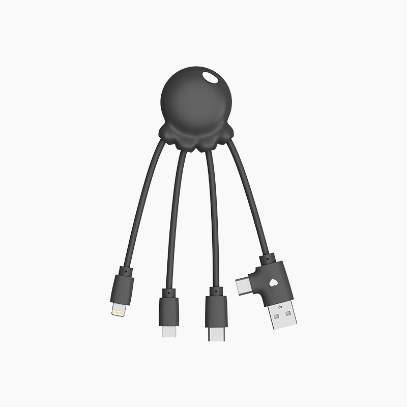 1er câble de la marque Xoopar, l'Octopus continue à trouver sa place auprès des utilisateurs grâce à ses connecteurs et son côté fun et pratique! Découvrez sa version Ocean Bound Plastic, fabriquée à partir de plastique recyclé récolté à 50 km des côtes
