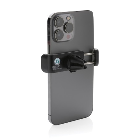 Support pour voiture universel et rotatif à 360 degrés en ABS recyclé certifié RCS (Recycled Claim Standard). Contenu recyclé total : 37 % basé sur le poids total de l'article. La certification RCS garantit une chaîne d'approvisionnement entièrement certifiée des matériaux recyclés. Cliquez l'article sur votre bouche d'aération et placez votre téléphone portable (jusqu'à 6.2 pouces) dans le support. Fabriqué à partir d'ABS recyclé résistant à la chaleur et de silicone solide pour rendre l'article durable et éviter qu'il ne tombe de votre grille d'aération pendant la conduite. Avec mécanisme en acier inoxydable à l'intérieur pour garantir que votre téléphone reste en place.