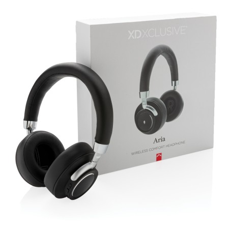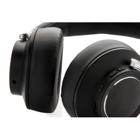 Casque audio en aluminium et PU avec BT 4.2 pour une connexion rapide et stable jusqu'à 10 mètres et batterie de 250 mAh qui vous permet d'écouter de la musique jusqu'à 8 heures. Avec un microphone et une fonction pour répondre aux appels. Le casque peut se plier à plat dans la pochette. Emballé dans une boite cadeau.
