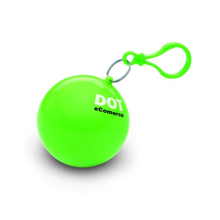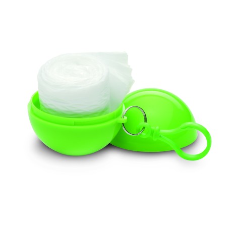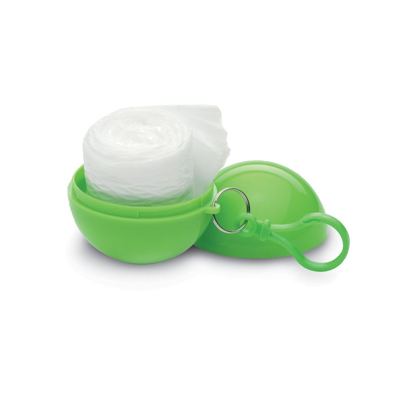 Poncho de pluie transparent en PE, présenté dans une coque en AS avec un mousqueton.