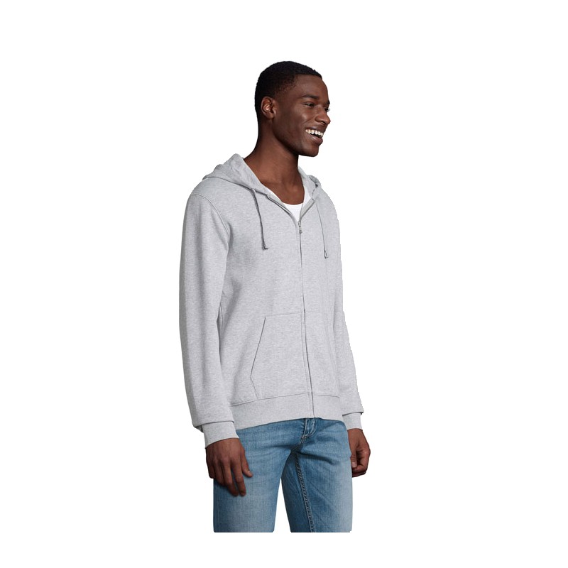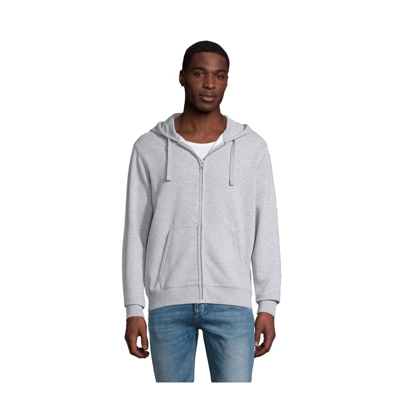 SOL'S SPIKE MEN; VESTE ZIPPÉE HOMME À CAPUCHE; 80% coton Ringspun- 20% polyester; Intérieur gratté; Extérieur 100% coton Molleton 280 technologie LSF (low shrinkage fabric) ; Manches montées; 2 poches kangourou; Coupé cousu; Capuche doublée avec cordon de serrage ton sur ton; Poignets et bas en bord côte 2x2; Demi-lune à l'intérieur du col; Bande de propreté intérieur col; Zip YKK; (1) Gris chiné : 75 % coton / 20 % polyester / 5 % viscose.Pour la correspondance des tailles, veuillez vous référer au size chart dans la documentation produit.
