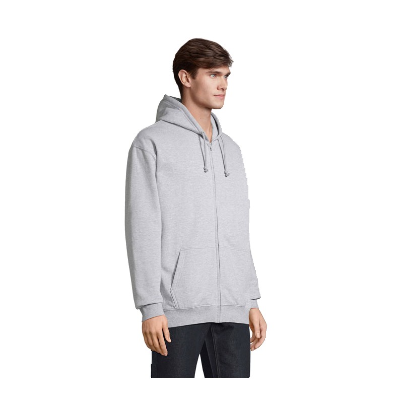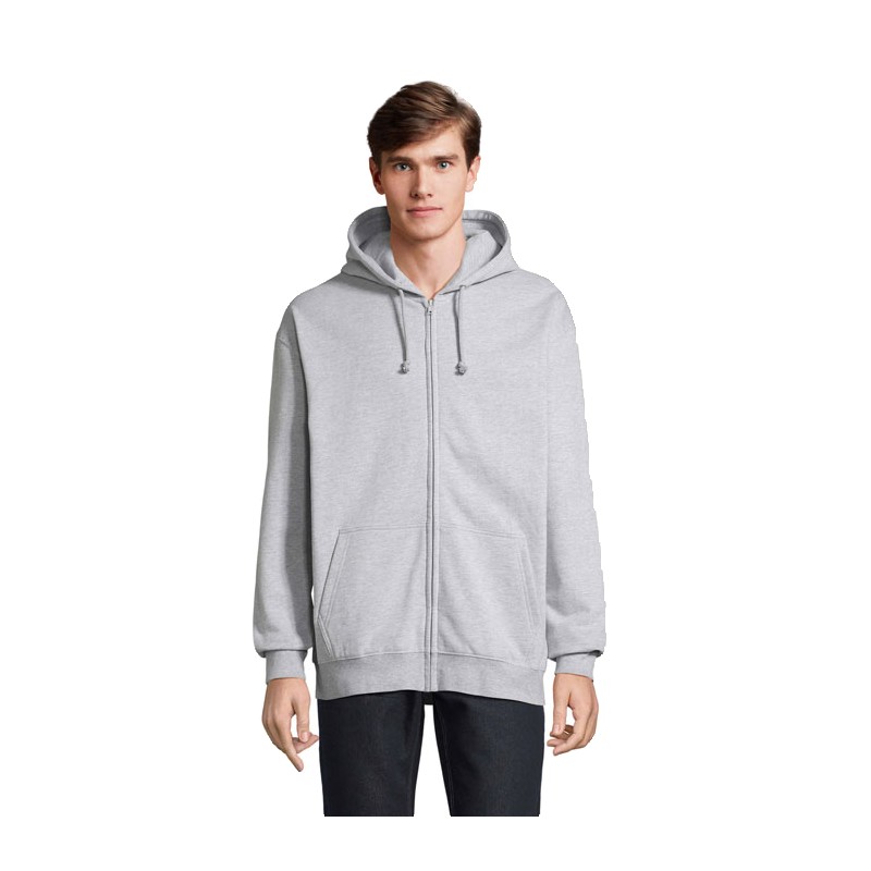 SOL'S CARTER, veste zippée unisexe à capuche 80% coton - 20% polyester recyclé manches montées,coupé cousu,bord côte 1x1 aux poignets et bas du corps,poche kangourou,capuche doublée avec lacet ton sur ton et œillets en métal,ouverture principale avec zip recouvert,zip plastique injecté ton sur ton avec tir-zip en métal ton sur ton,demi-lune et bande de propreté en jersey dans l'encolure (1) gris chiné : 73 % coton / 20 % polyester recyclé / 7 % viscose,(2) anthracite chiné : 60 % coton / 40 % polyester recyclé. pour la correspondance des tailles, veuillez vous référer au size chart dans la documentation produit.