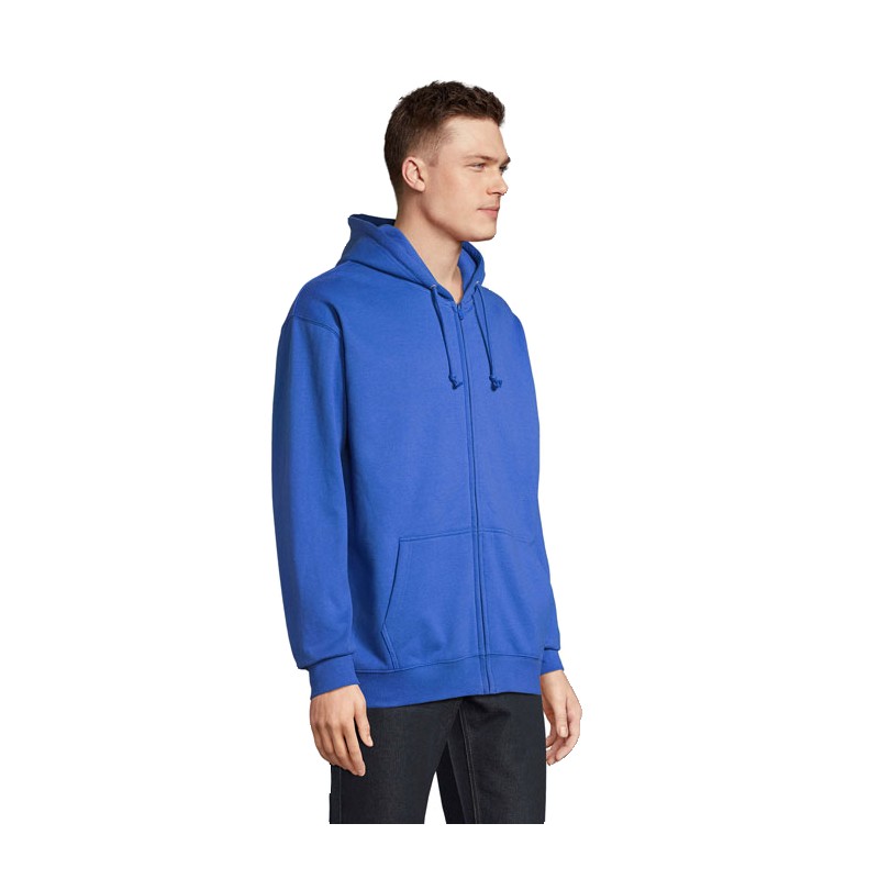 SOL'S CARTER, veste zippée unisexe à capuche 80% coton - 20% polyester recyclé manches montées,coupé cousu,bord côte 1x1 aux poignets et bas du corps,poche kangourou,capuche doublée avec lacet ton sur ton et œillets en métal,ouverture principale avec zip recouvert,zip plastique injecté ton sur ton avec tir-zip en métal ton sur ton,demi-lune et bande de propreté en jersey dans l'encolure (1) gris chiné : 73 % coton / 20 % polyester recyclé / 7 % viscose,(2) anthracite chiné : 60 % coton / 40 % polyester recyclé. pour la correspondance des tailles, veuillez vous référer au size chart dans la documentation produit.