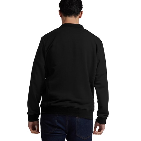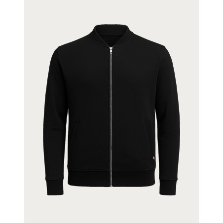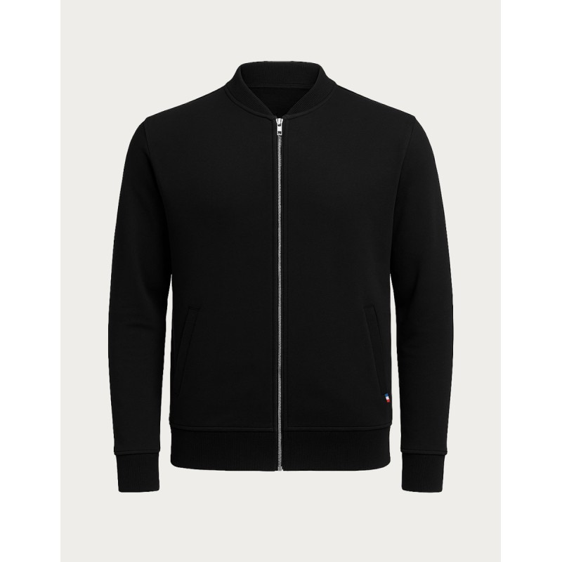Blouson Made in France façon Teddy. 80% coton biologique certifié OCS, 20% polyester recyclé. 2 poches mains passepoilées. Matière Terry 350g/m² lavée, non grattée pour éviter le boulochage + traitement silicone pour améliorer la longévité du vêtement. Col en demi lune. Double piqure en bas de veste. Bande de propreté au col. Zip central YKK.